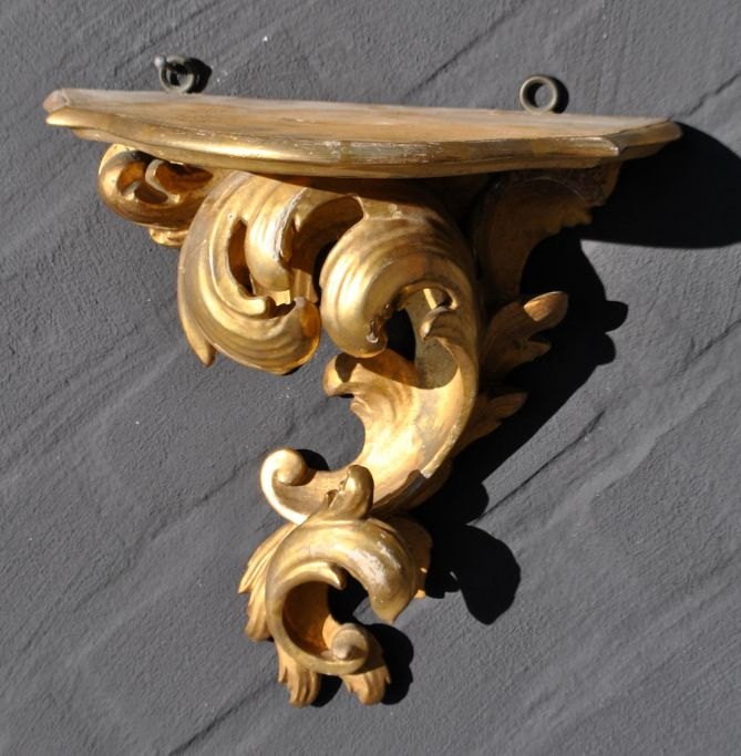 Ny rococo hylde i forgyldt træ, 19. årh. H.: 26 cm. B.: 24,5 cm. D.: 14,5 cm.