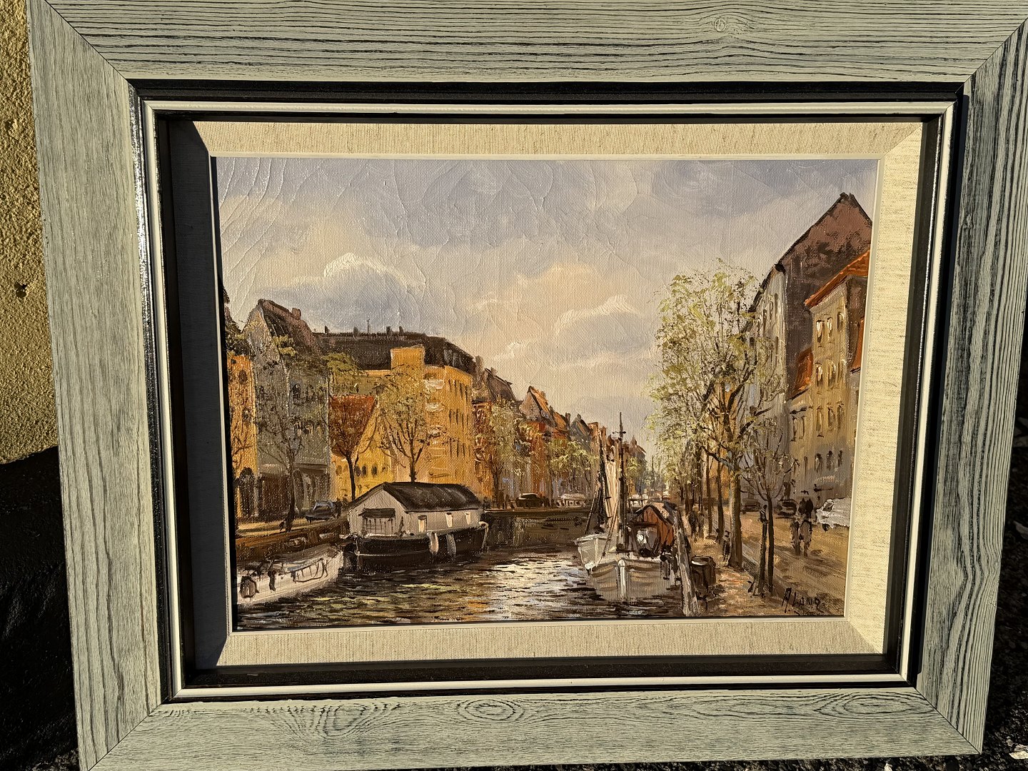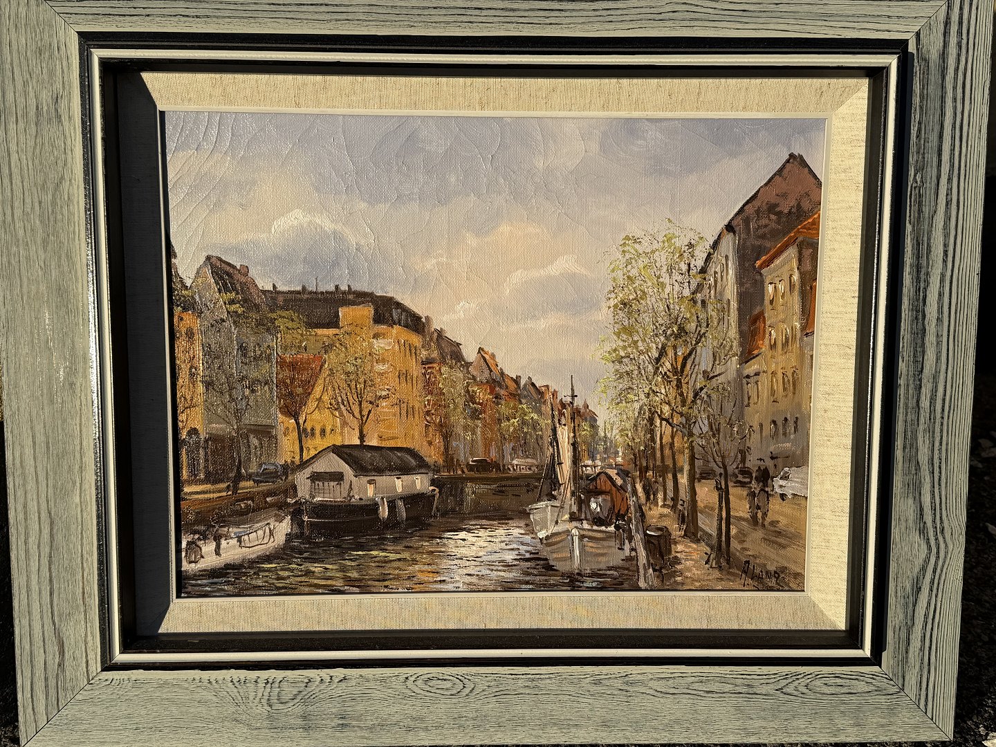 Aksel Lang Olsen ( født 1931), Christianshavns kanal, Olimaleri på lærred, Mål med ramme: 48x58cm