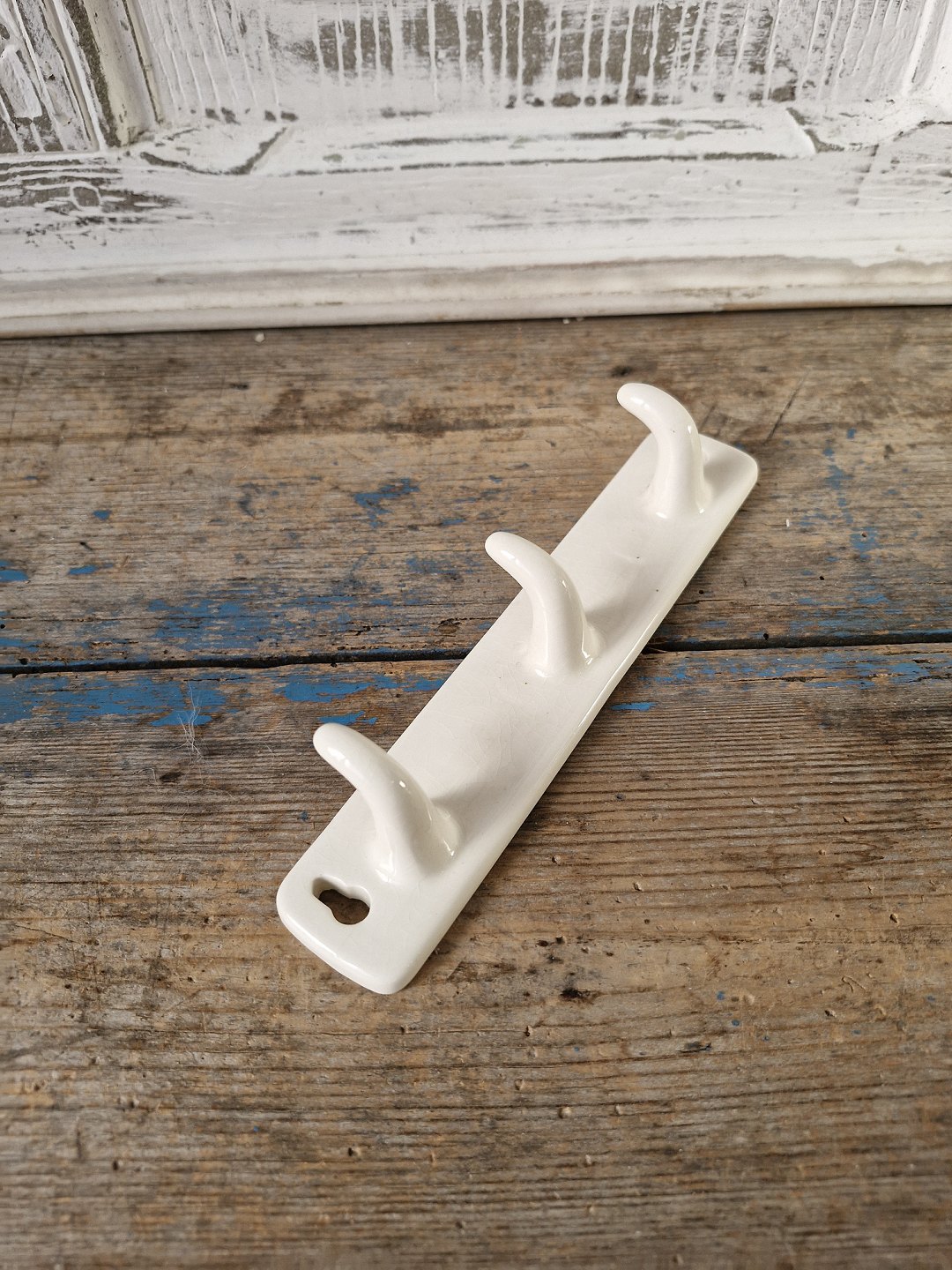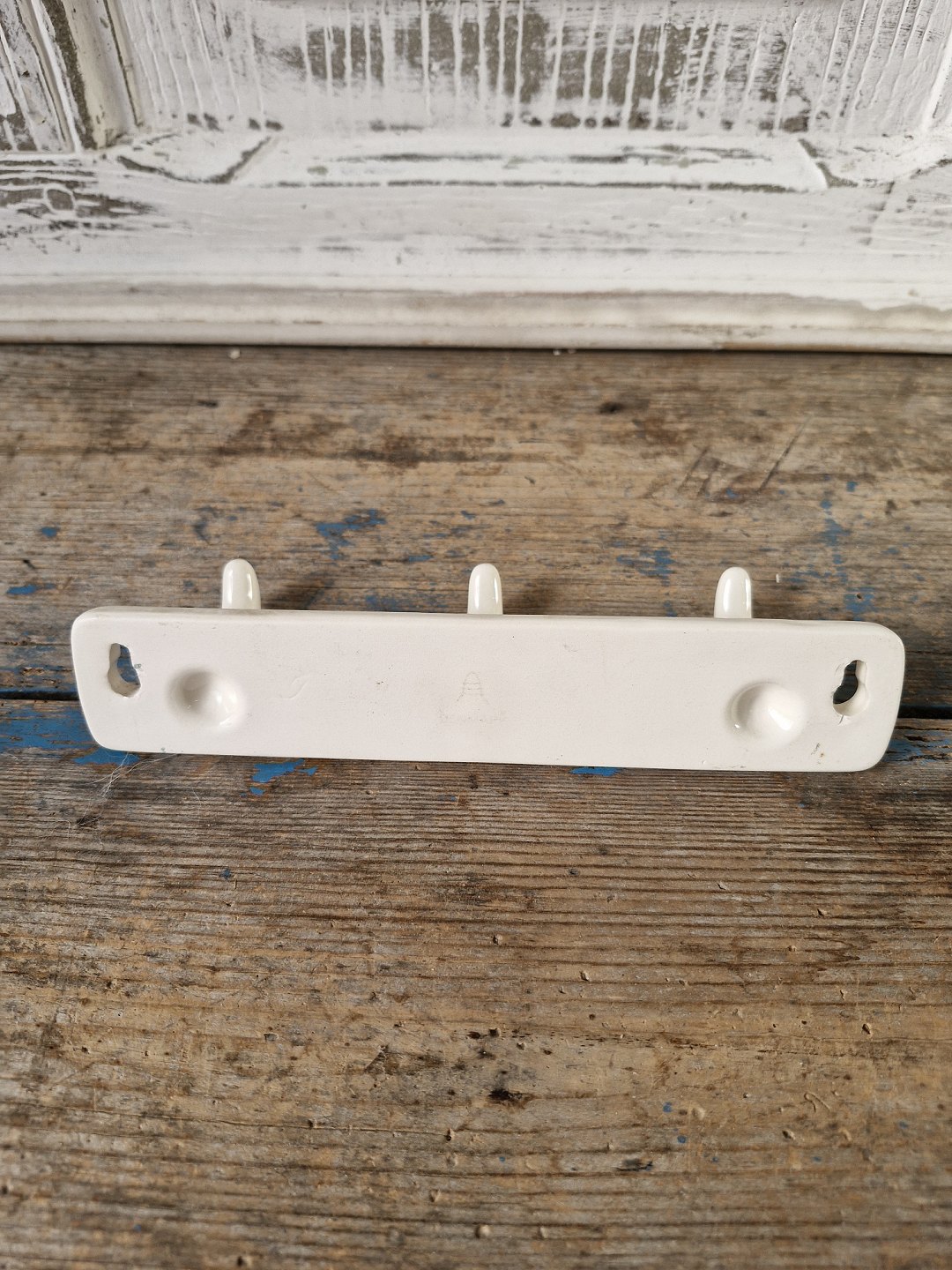 Aluminia cream-colored earthenware coat rack with 3 hooks. Dimensions: 3.5 x 18.5 cm.