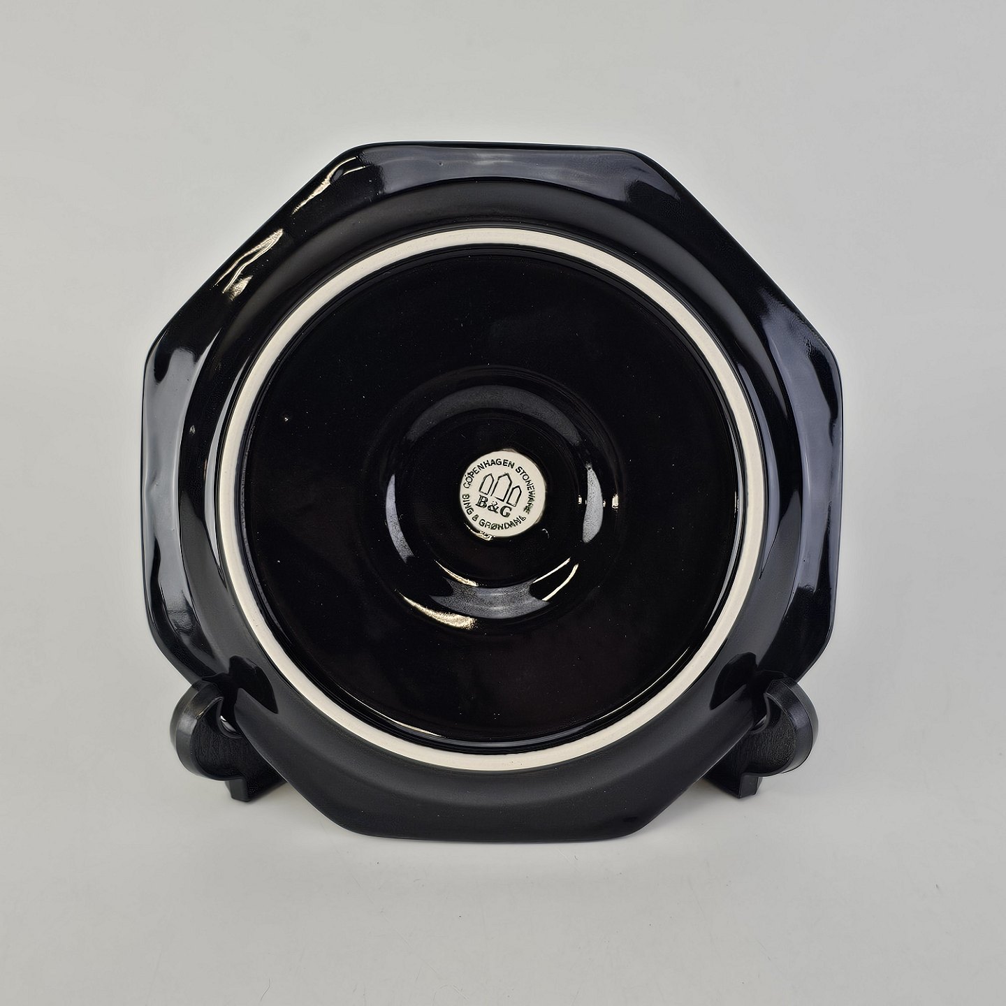 Stellet er i glaseret, kantet stentøj og findes i både sort og hvid