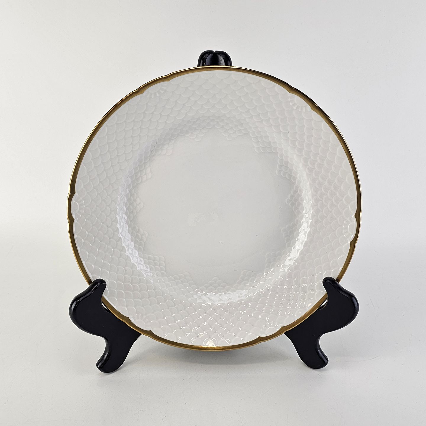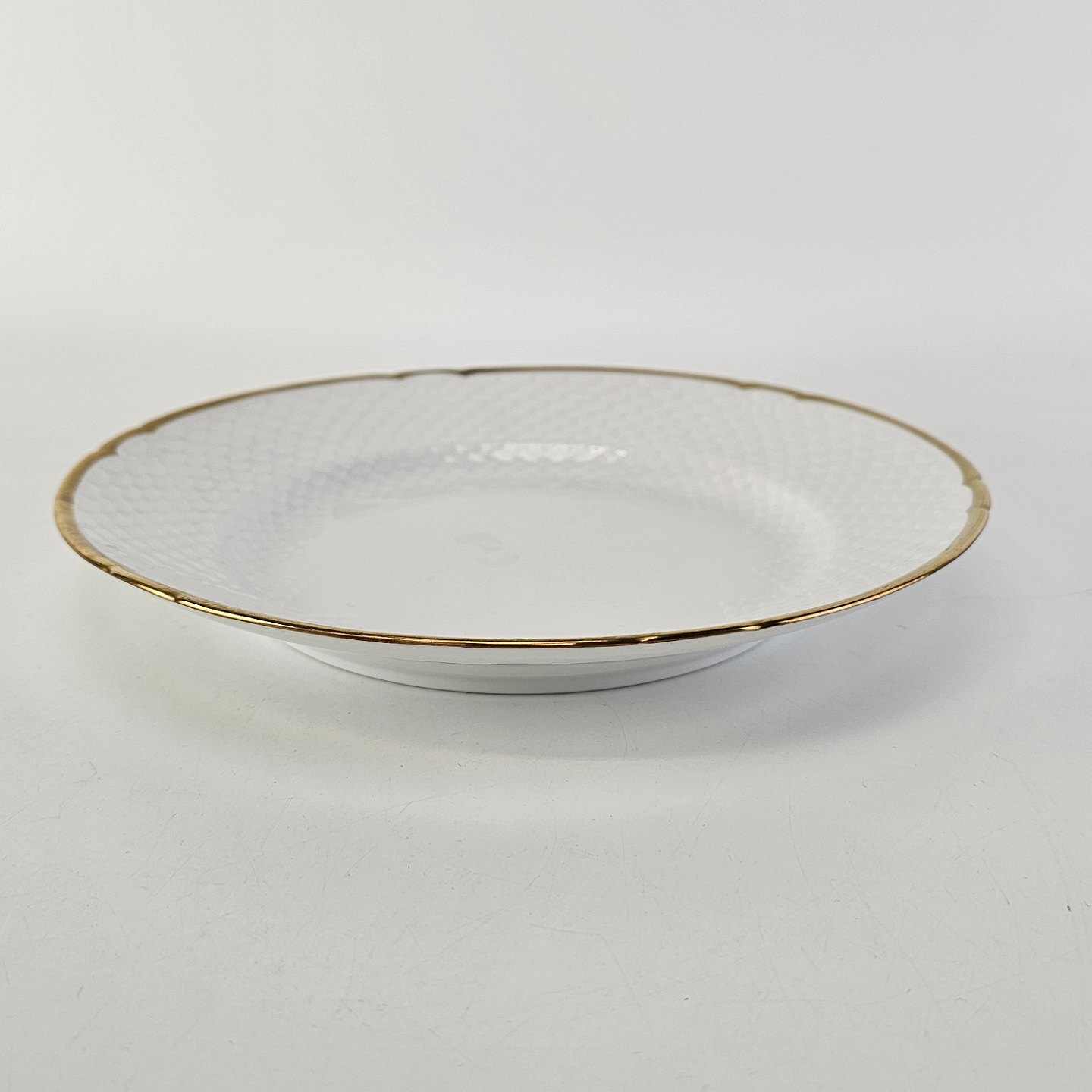 Hostrup er hvidt porcelæn i skælform med guldkant