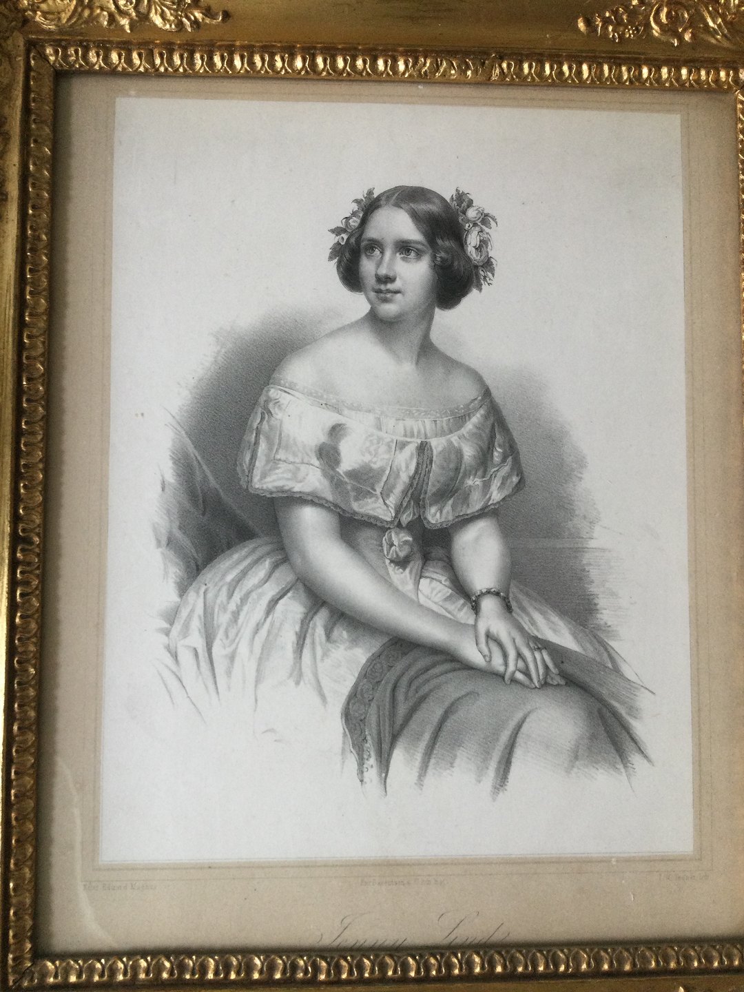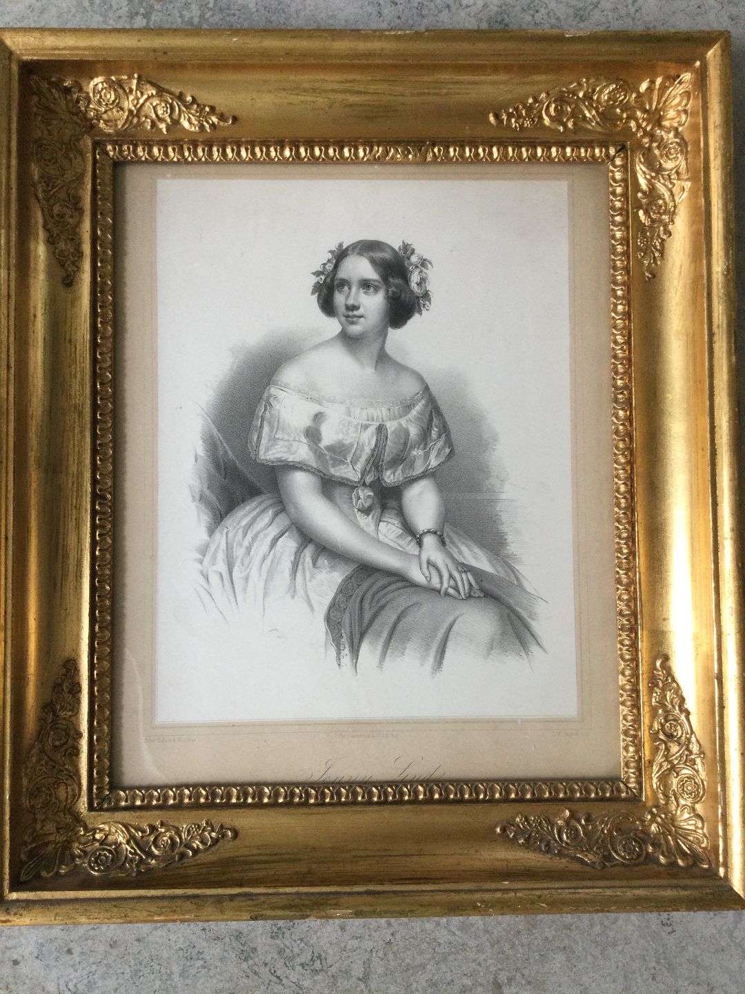 Litografi af Isac Wilhelm Tegner - Portræt af Operasangerinden Jenny Lind.