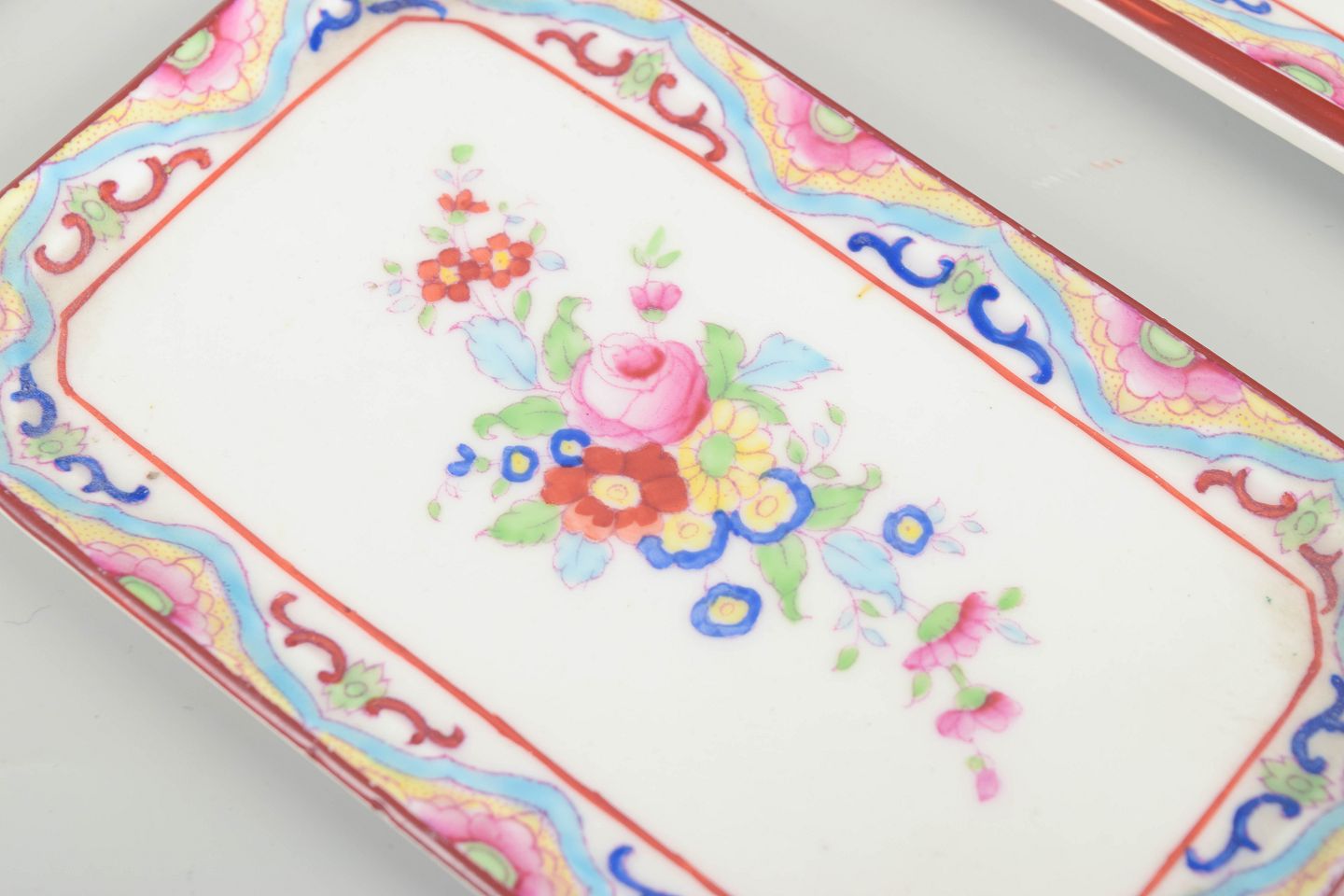 Foley Art China was produced by John Aynsley & Sons in Staffordshire and is renowned for its hand-painted decorative porcelain series, often drawing from oriental and floral inspirations. These sets were especially popular as tea and dressing-table sets for the European and American export markets.