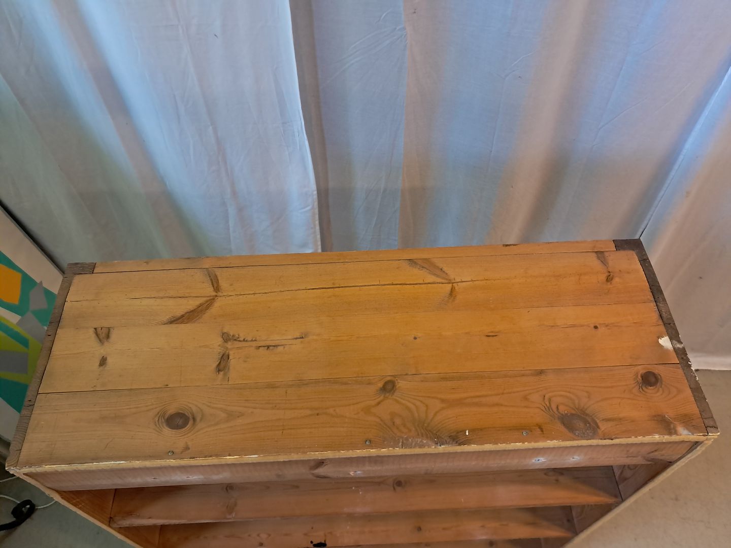Gammelt køkkenskab i massivt fyrretræ, fra 1920erne.