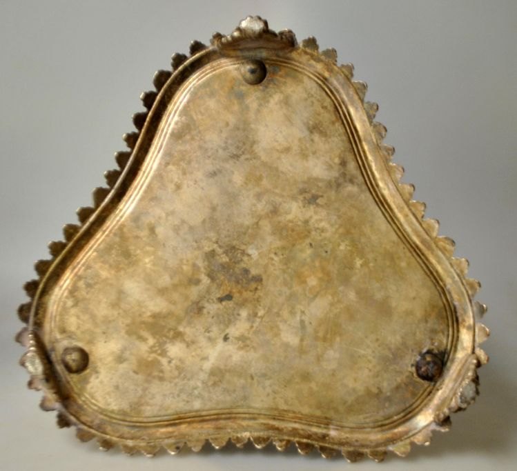 Engelsk forsølvet vinholder, 20. årh. Trekantet form til tre flasker med holder. H.. 26 cm. B.: 25 cm.
