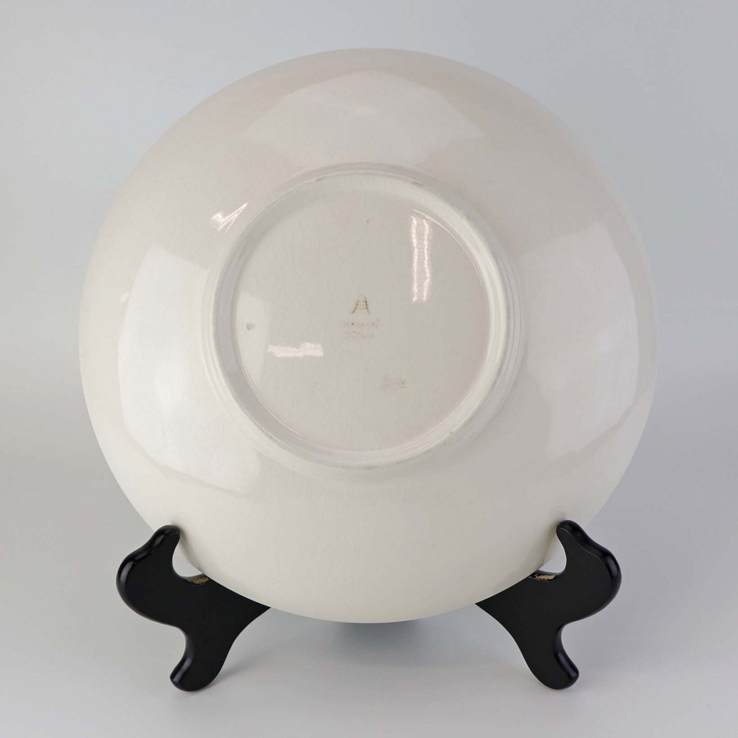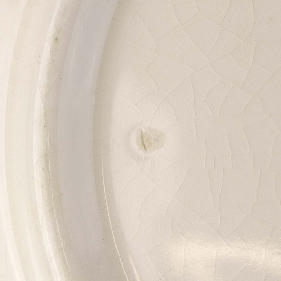 Fremstår med krakkeleringer i glasuren samt mindre bruninger under glasuren og på bagsiden.