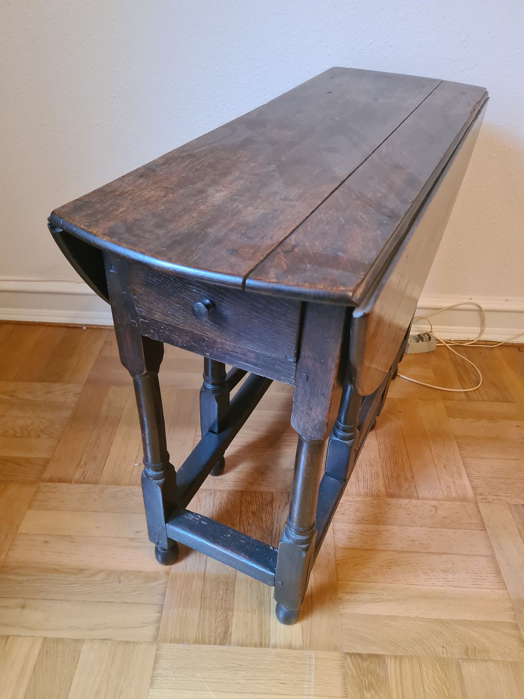 Klapbord fra 1800 tallet i eg og med skuffe. Pænt, velholdt og udmærket funktionsdygtigt.
