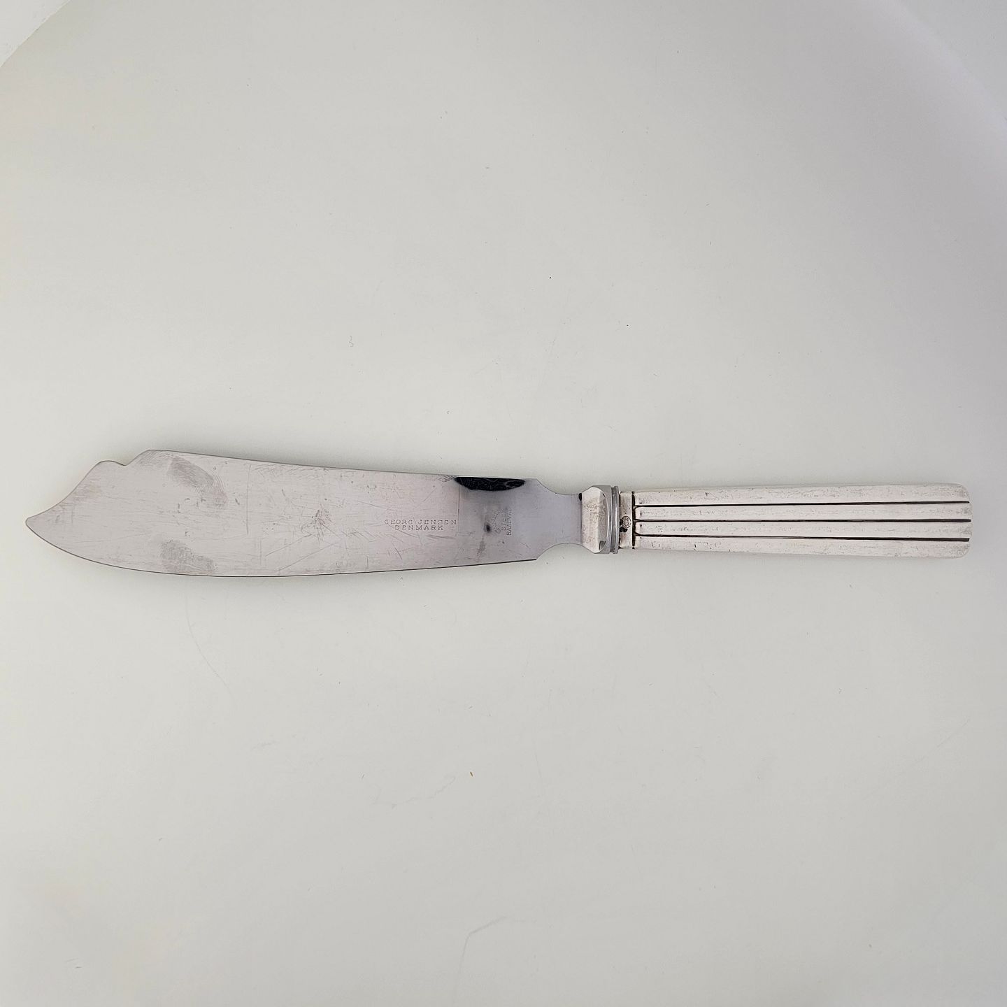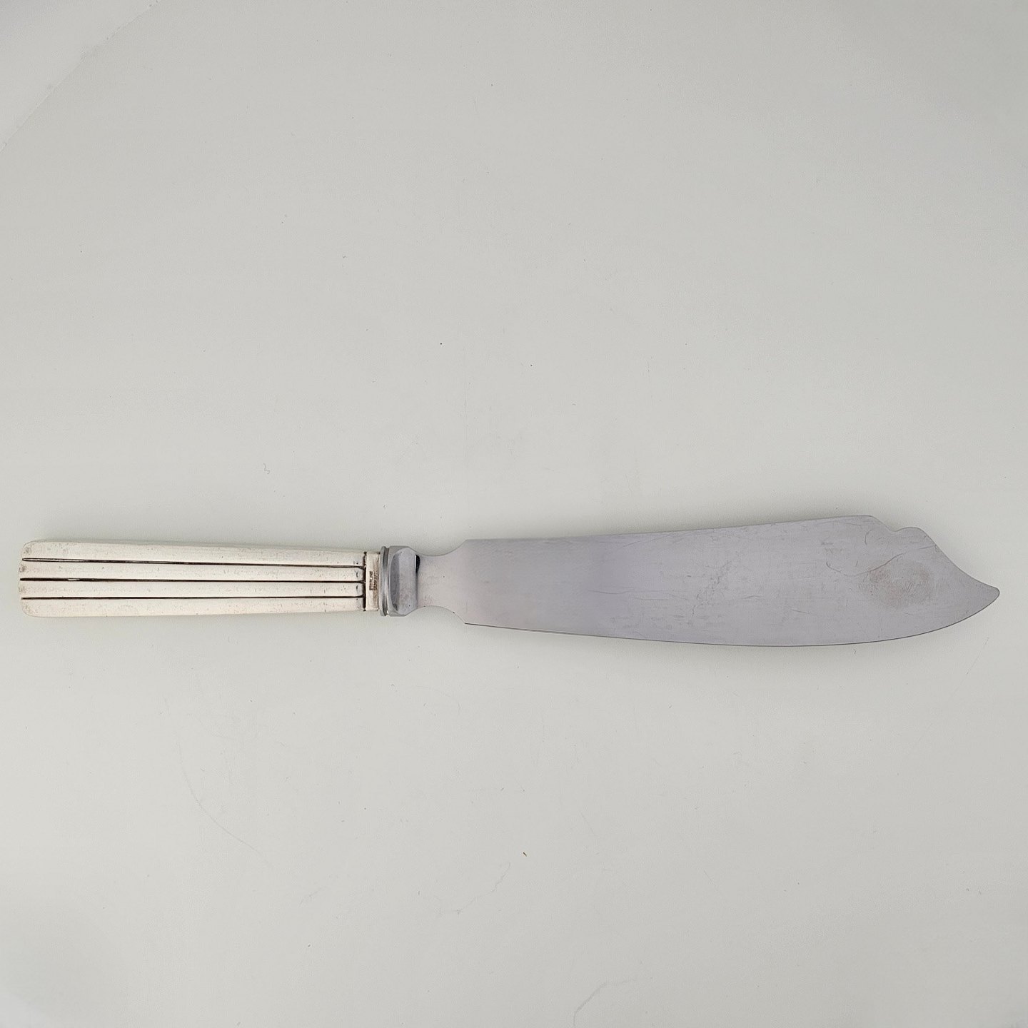 Bernadotte lagkagekniv i sterling sølv, med rustfrit stål skaft dekoreret med striber