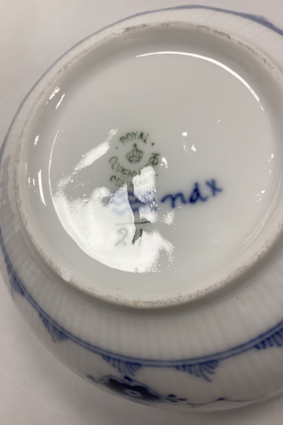 Royal Copenhagen Musselmalet Riflet Skål No. 211. Har 2 afslag i bunden, se foto.