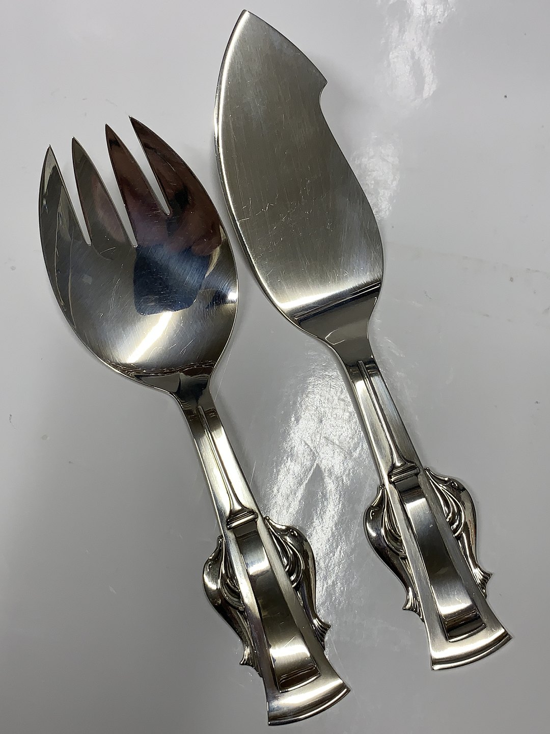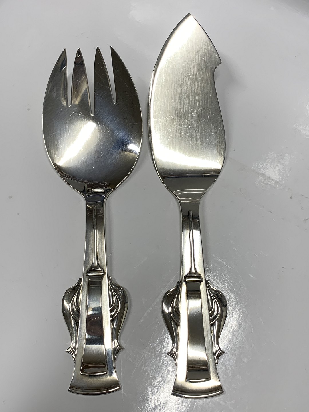 Fish serving set with Dolphins in silver Carl M. Cohr