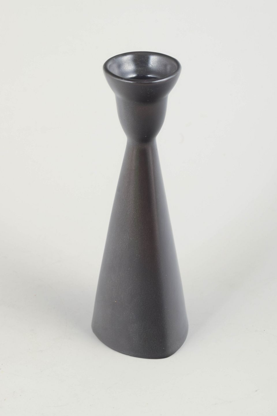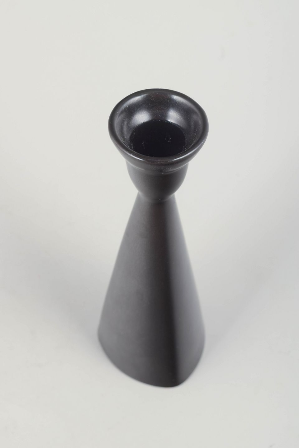 Elegant cone-shaped candlestick in black-glazed stoneware with a smooth matte surface and bowl-shaped top.