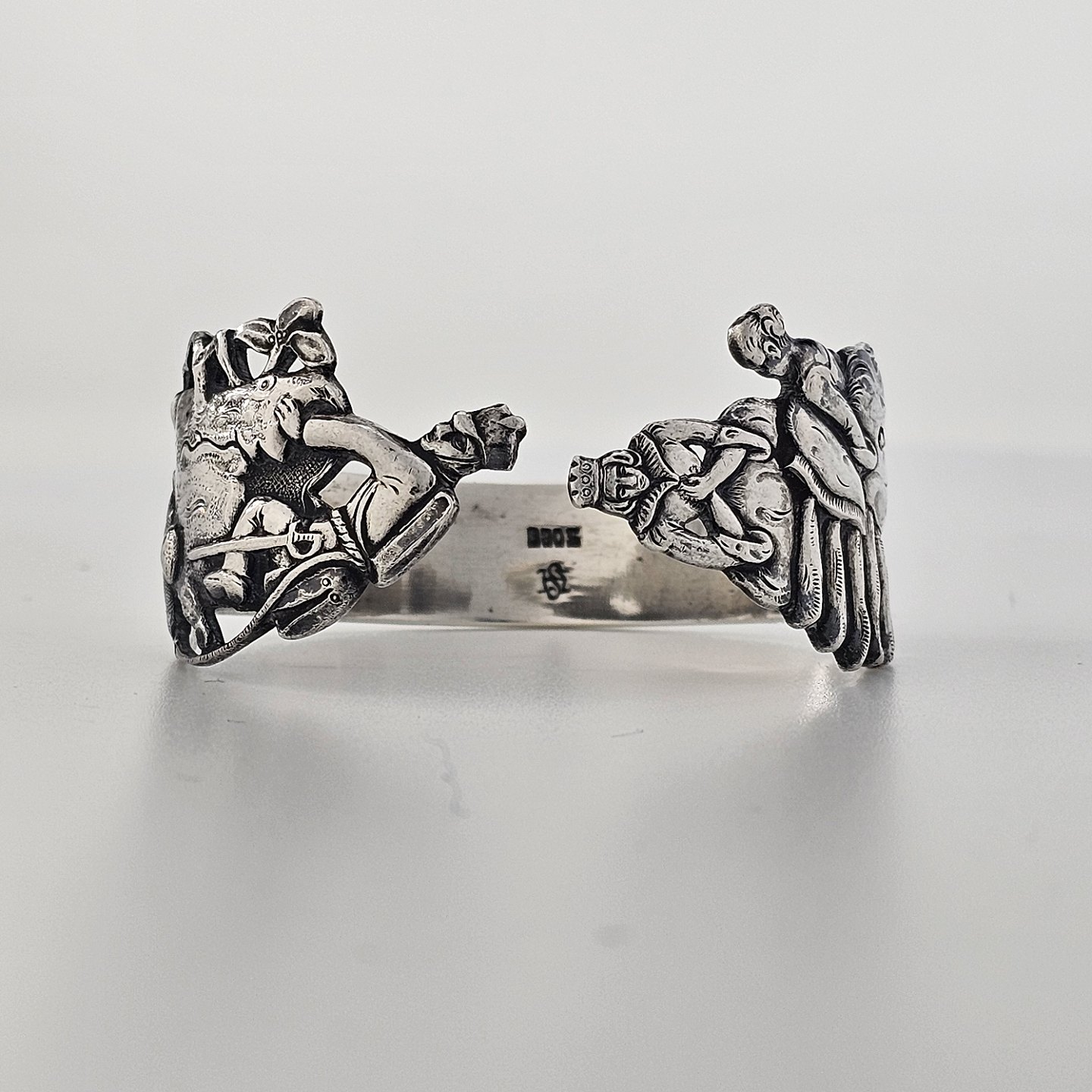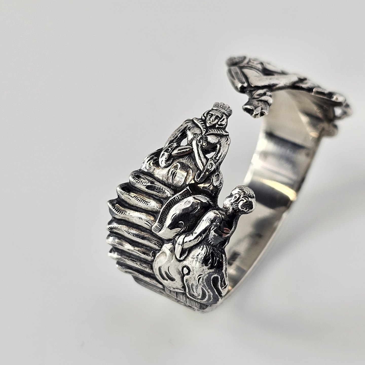 Servietring i sølv 830S med motiv af H.C. Andersens Prinsessen på Ærten og Fyrtøjet