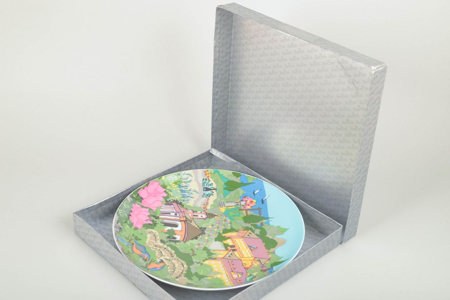 Sjælden Tallerken i porcelæn med farverigt motiv designet af Bjørn Wiinblad for Rosenthal. Inklusiv original æske.