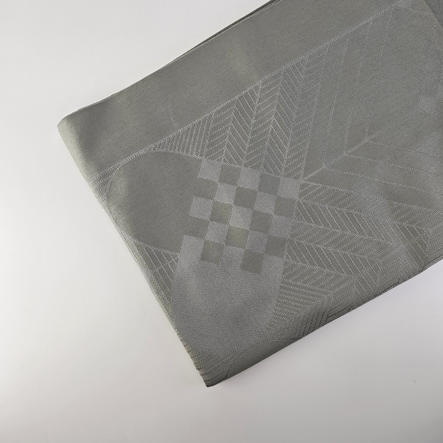 Grå vævet damask dug med motiv af julehjerter