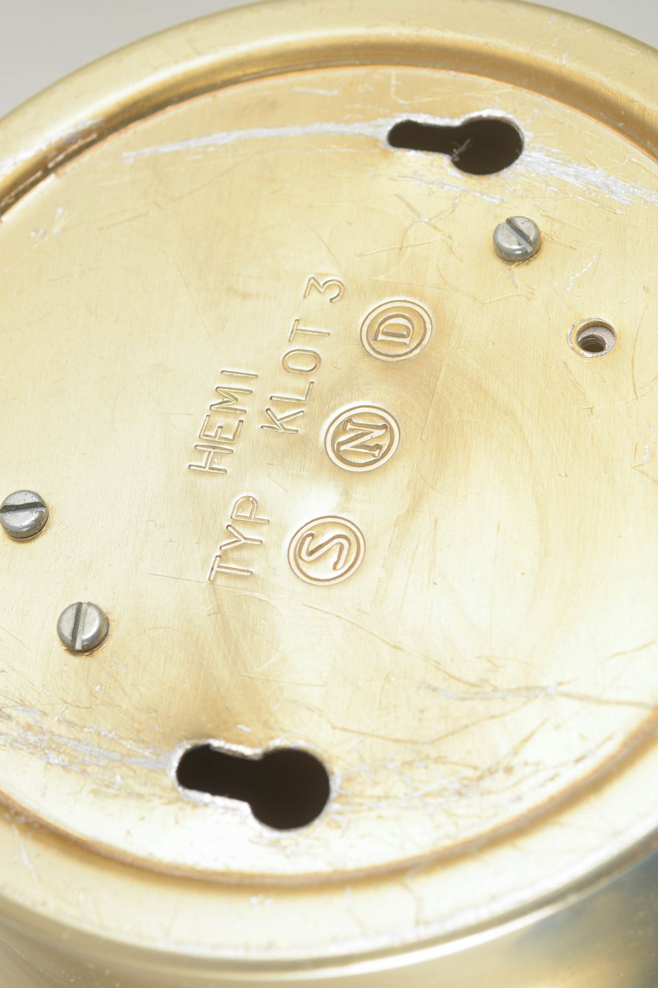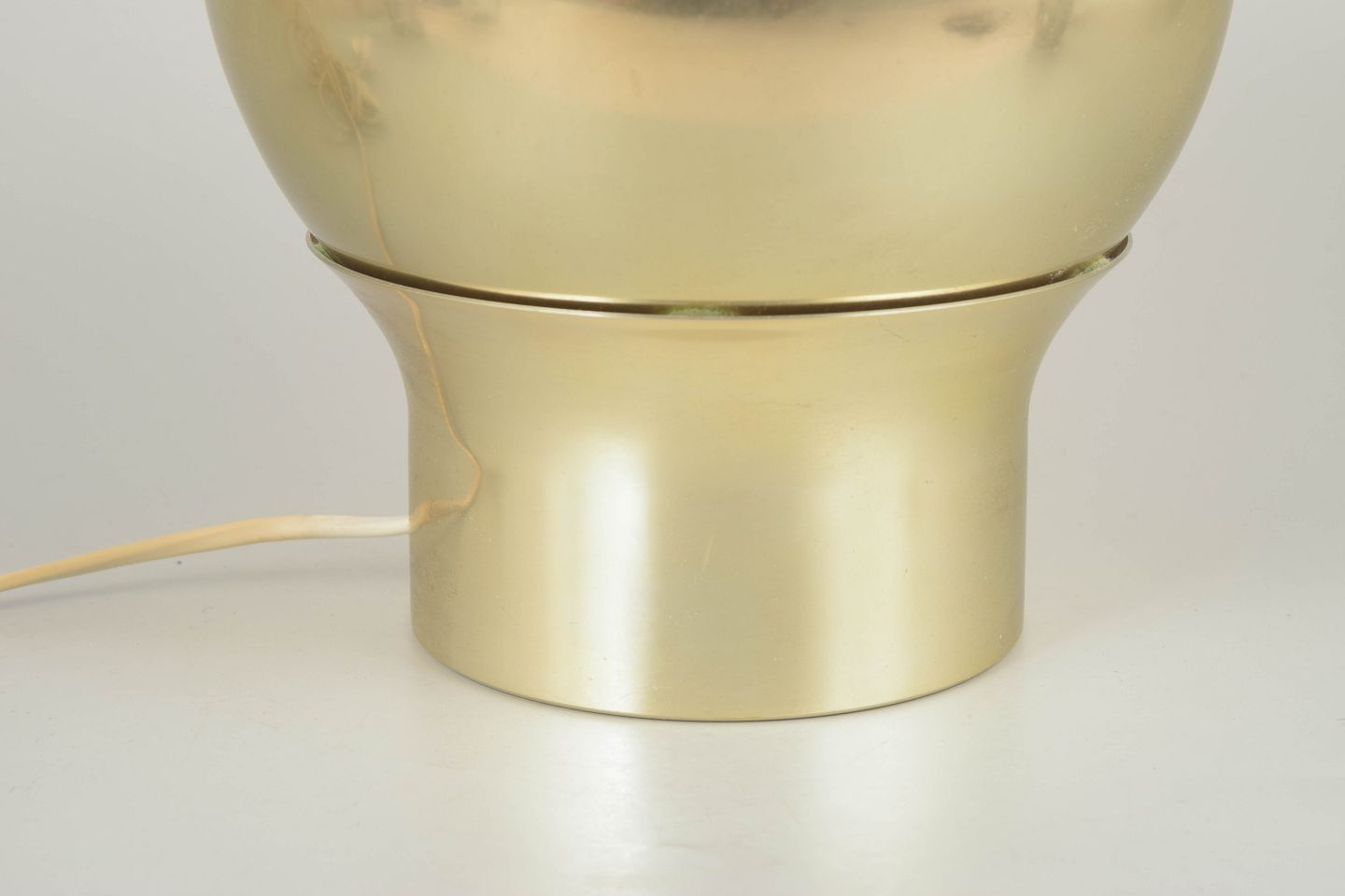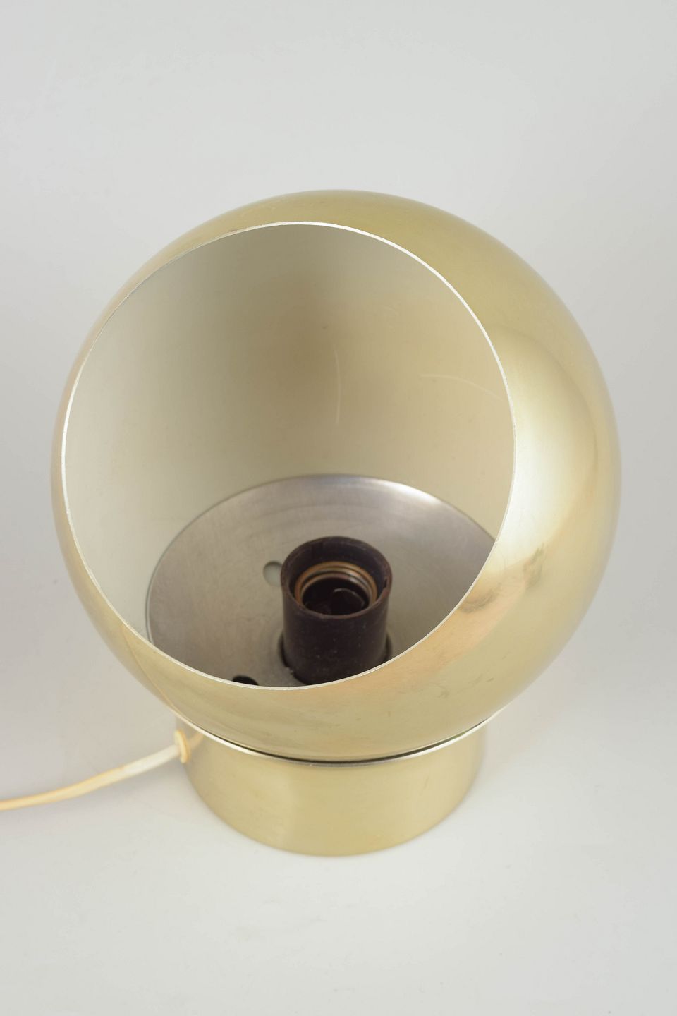 Skulpturel bordlampe i formpresset aluminium, udført i Sverige i 1975. Den halvkugleformede “hemi-klot” base giver lampen et markant, moderne udtryk, hvor den børstede metaloverflade understreger 1970’ernes industrielle æstetik.