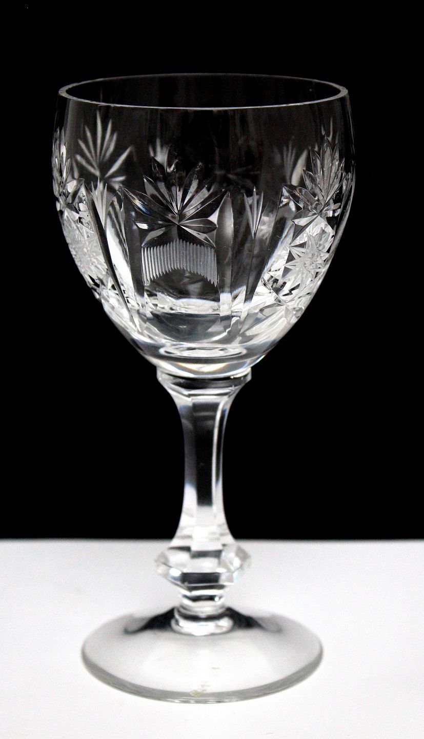 Heidelberg krystalglas med knop på slebet stilk. Hvidvin, højde 15 cm. Øverste diameter 7 cm. Pris: 175 kr. stk. Lager: 5