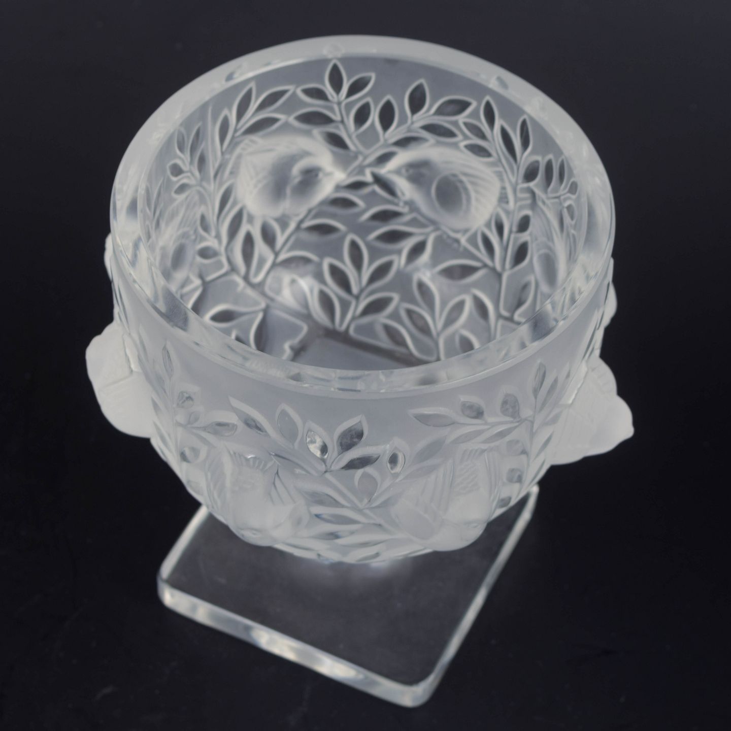 Lalique er verdenskendt for sine frosted krystalværker, hvor naturmotiver – ofte blade, blomster og frugter – udformes i dybe, skulpturelle relieffer. Produktionen fra 1970’erne videreførte René Laliques æstetiske arv med fokus på håndværk, elegance og sans for detaljer.
