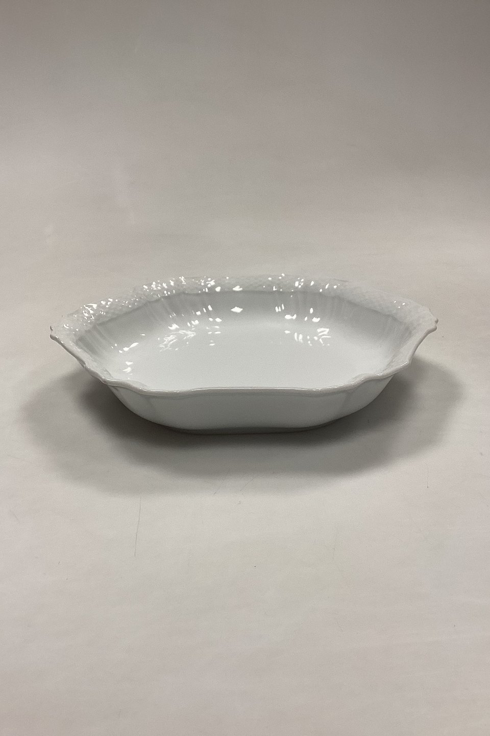 Royal Copenhagen Josephine Hvid Svejfet Sekskantet Skål No. 421. Måler 21 cm x 22,5 cm / 8,26 in. x 8,85 in. 2. Sortering med lille glasurfejl på undersiden af kanten.