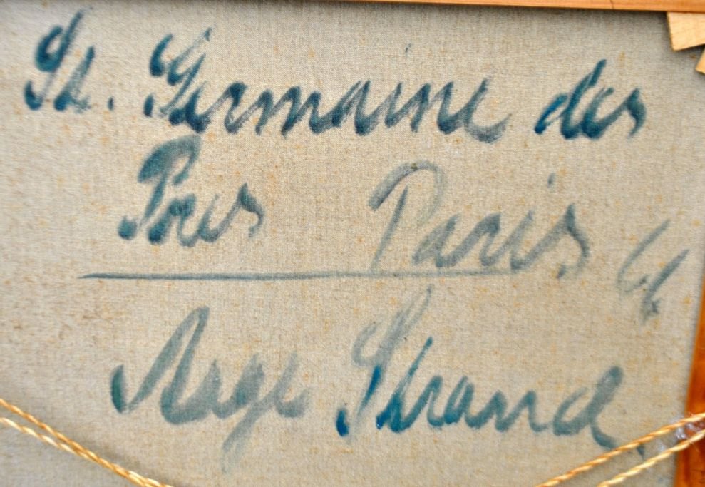 Strand, Aage (1910 - 1975) Danmark: St. Germain des Pres Paris, 1966. Olie på lærred. Signeret: Aage Strand 1966. H: 70 cm. B: 60 cm.