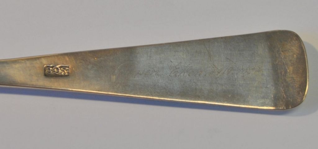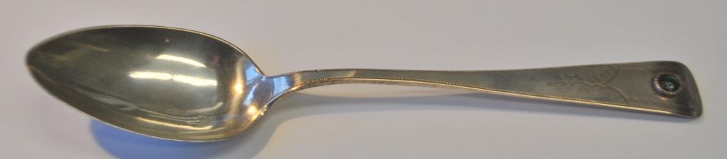 Peter Johannesen Petersen (1805 - 1873) Aabenraa, Danmark: Sølvske med grøn glasflus.
