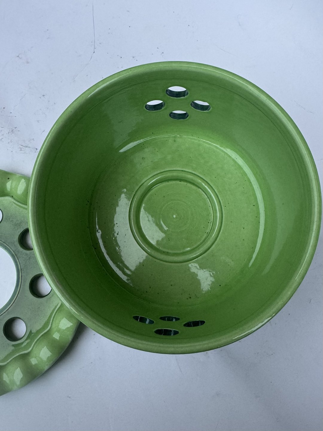 Sjælden grøn Sigurd te-varmer fra Aluminia fabrikken. I perfekt stand. Ingen skader eller reparationer. Første sortering. Fabriksmærket på bunden. Mål: H. 10 cm Ø. 16 cm