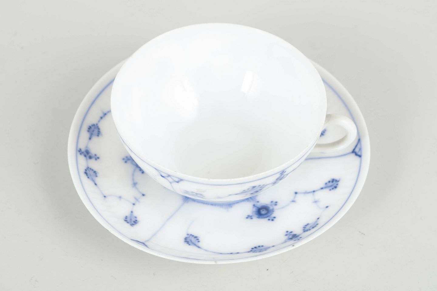 Musselmalet Riflet demitassekop med underkop, 1890’erne.