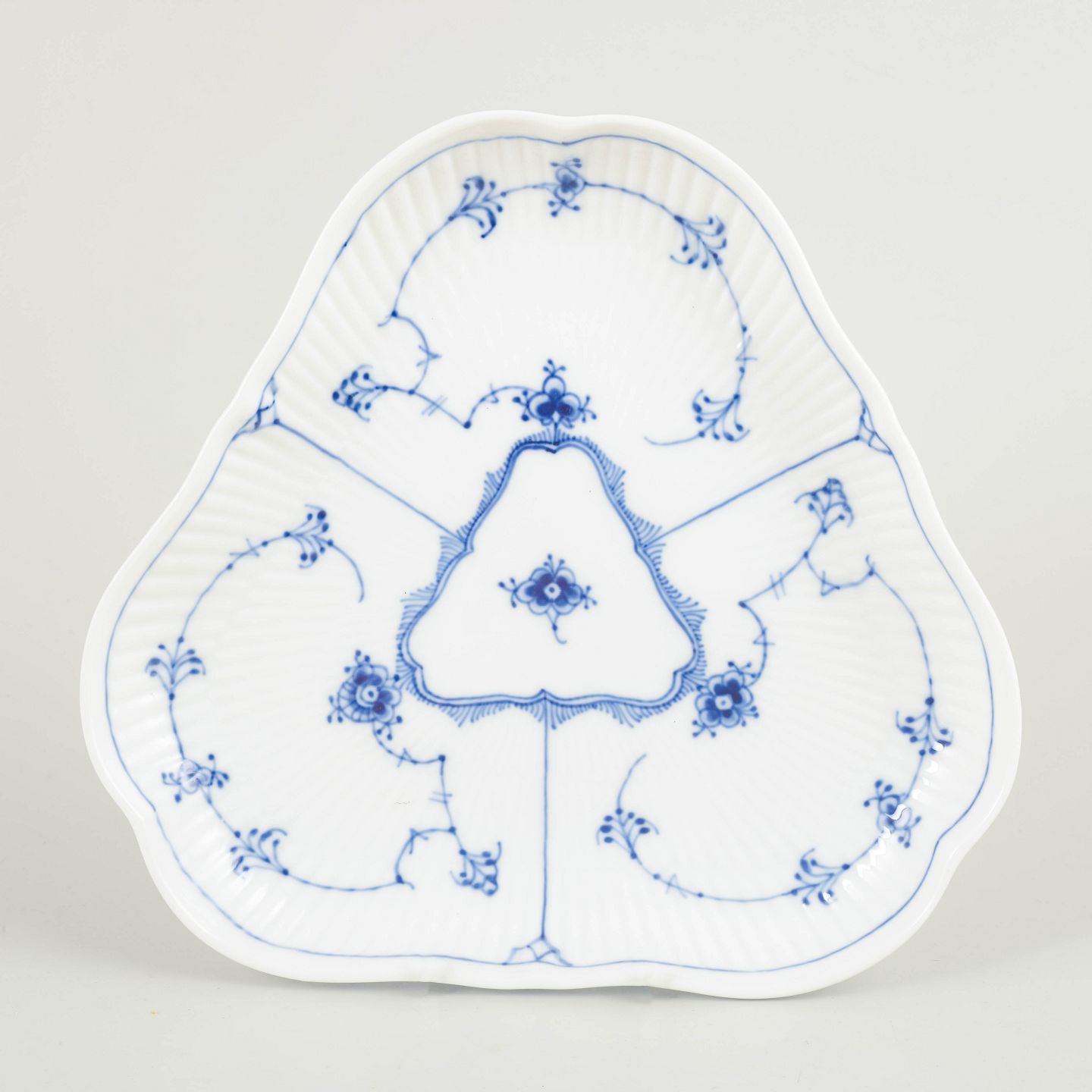 Royal Copenhagen Musselmalet Riflet trekantet fad, 1965.