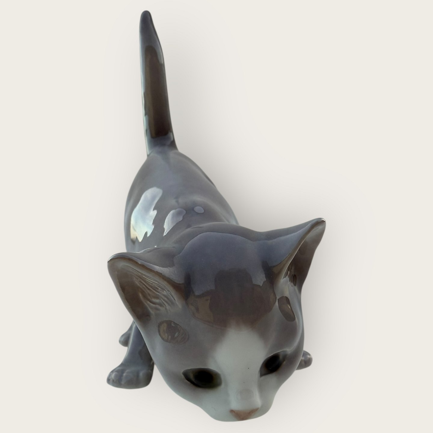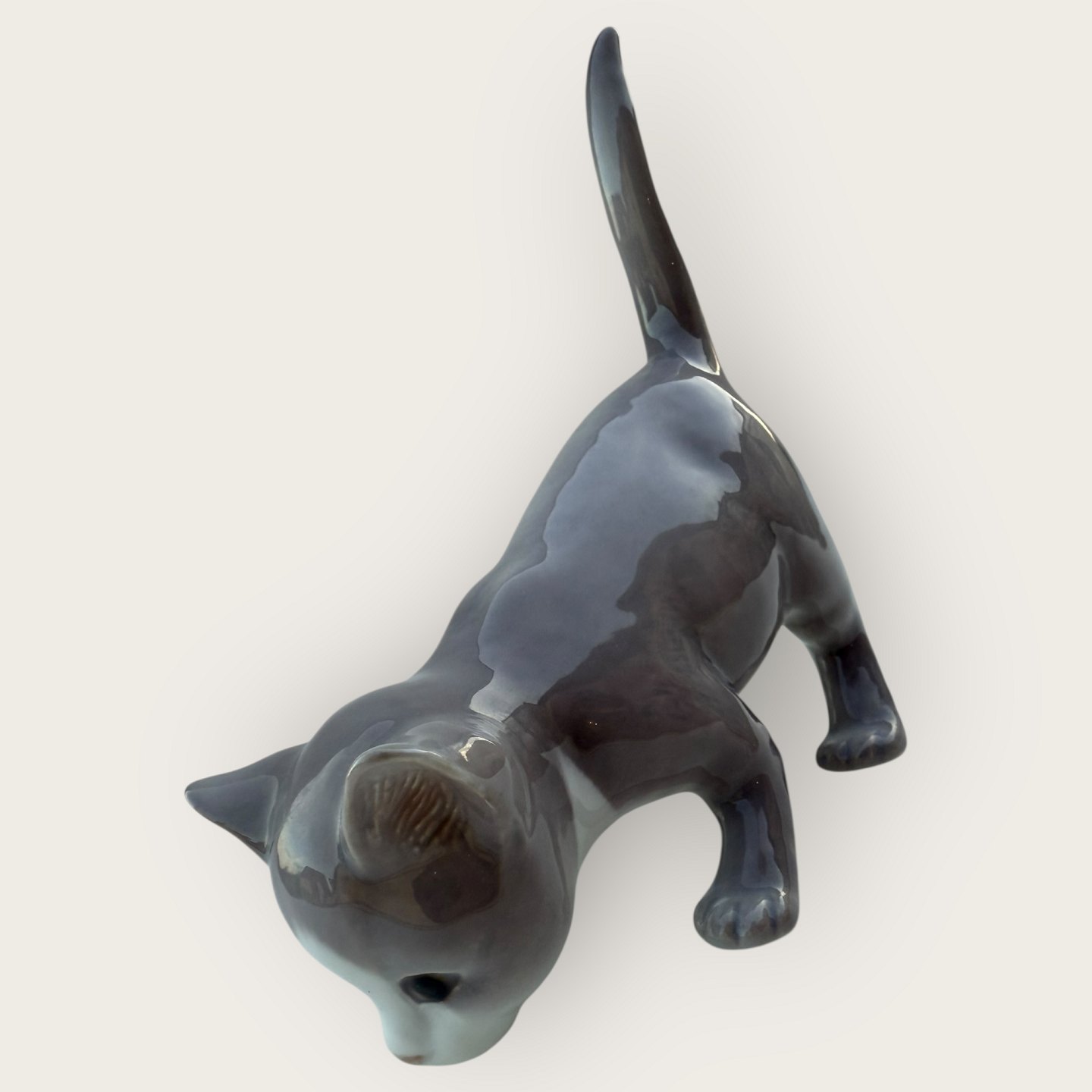 Bing & Grøndahl, Grå kat med løftet hale, # 2517, 1. sortering, Mål ca. 12x13x6cm *Fin stand*