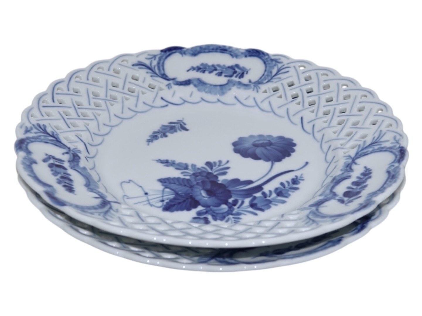 Royal Copenhagen Blå Blomst Svejfet, stor tallerken med dobbelt blondekant.
