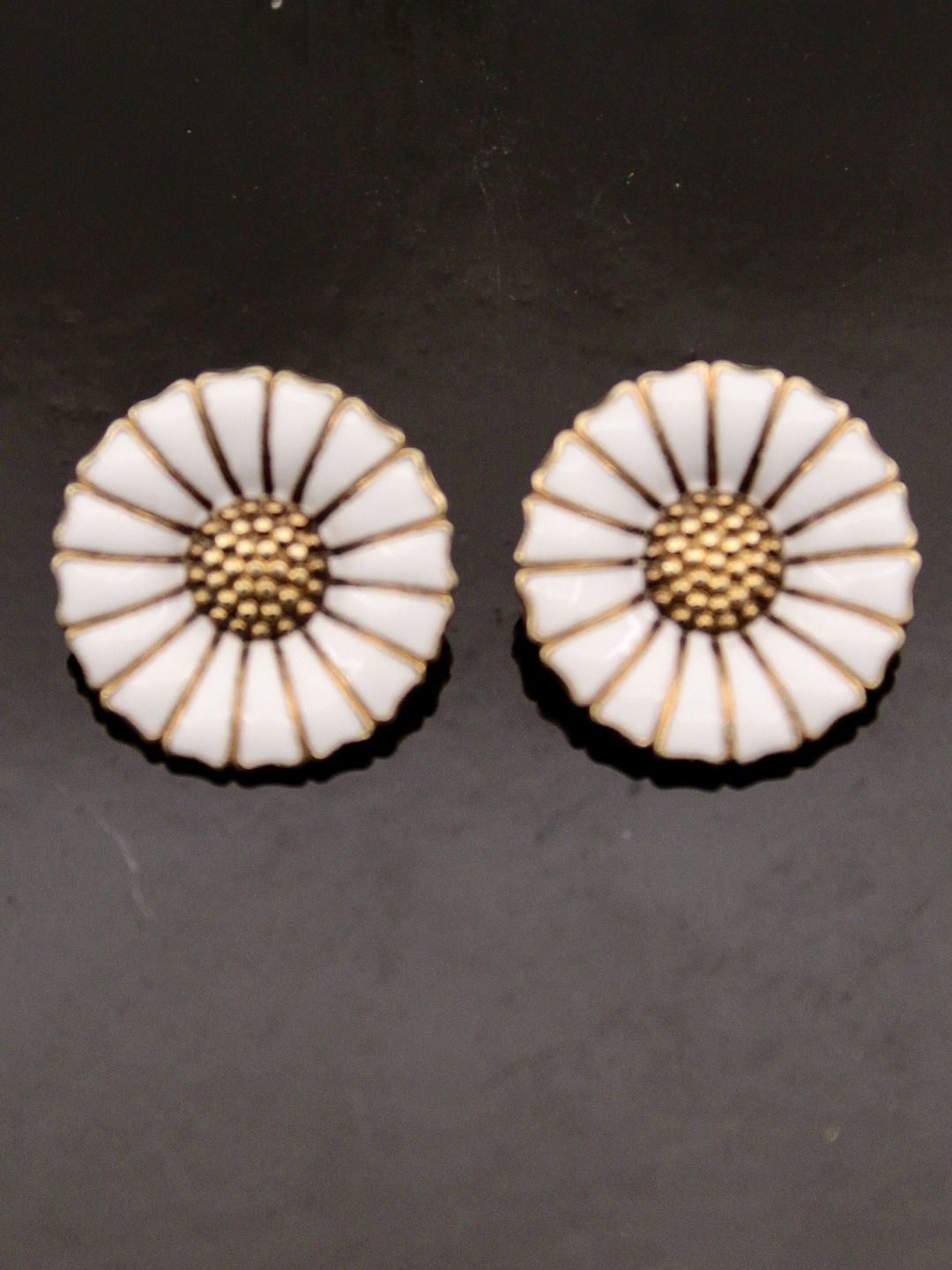 A. Michelsen marguerit øreclips 1,8 cm. sterling sølv med hvid. emalje emne nr. 628607