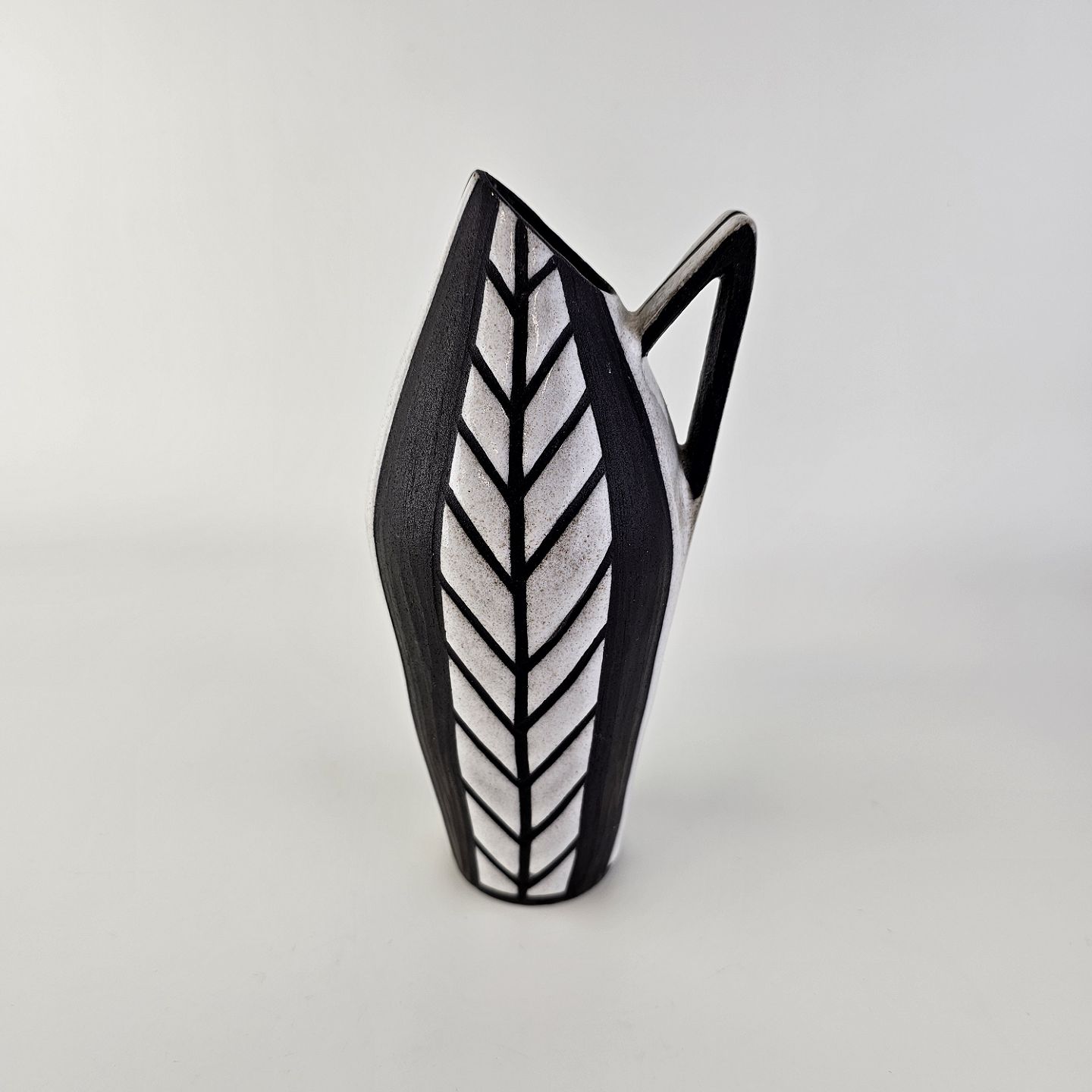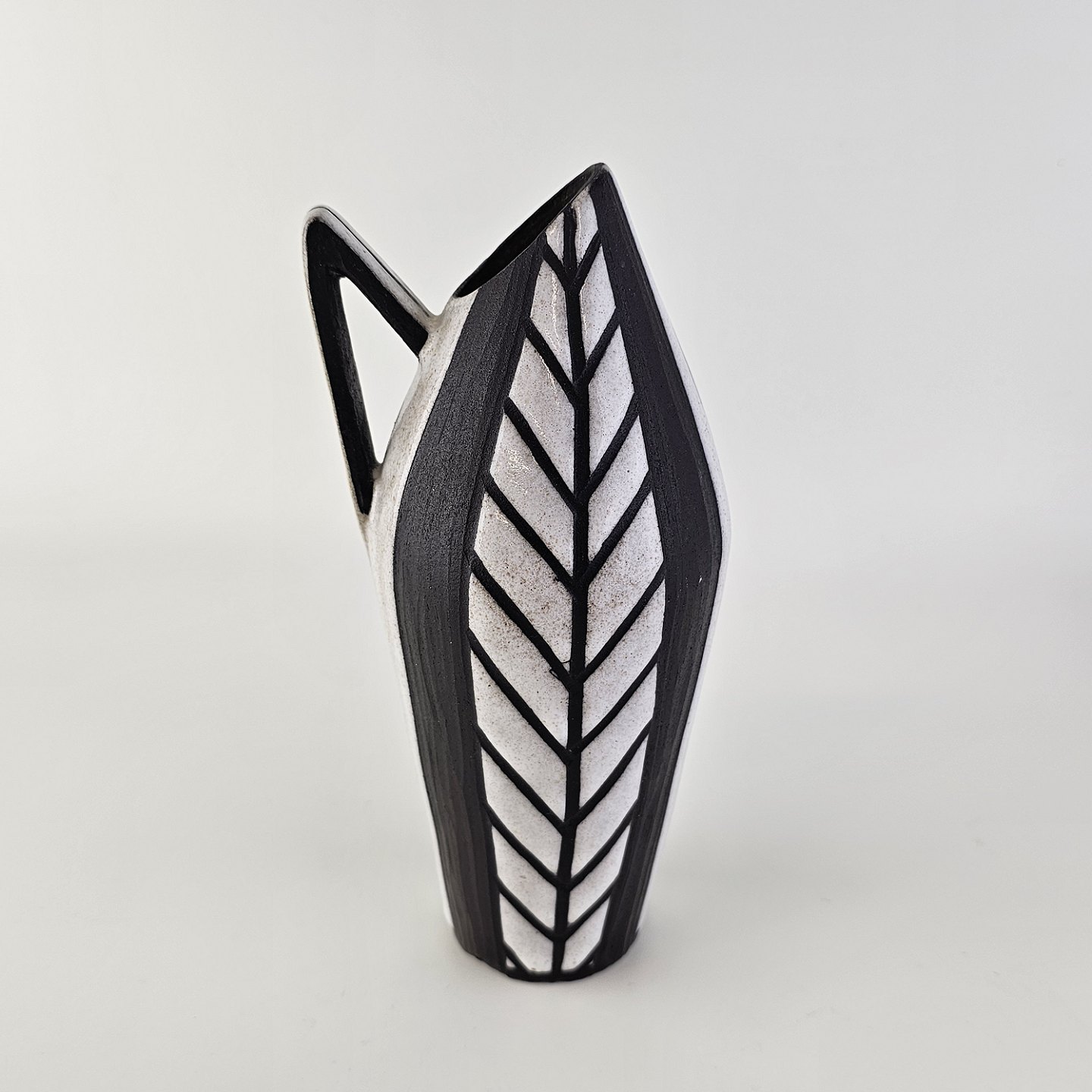 Vase med hank i keramik fra Negro serien med abstrakt motiv på mørk baggrund. Nr. 5513