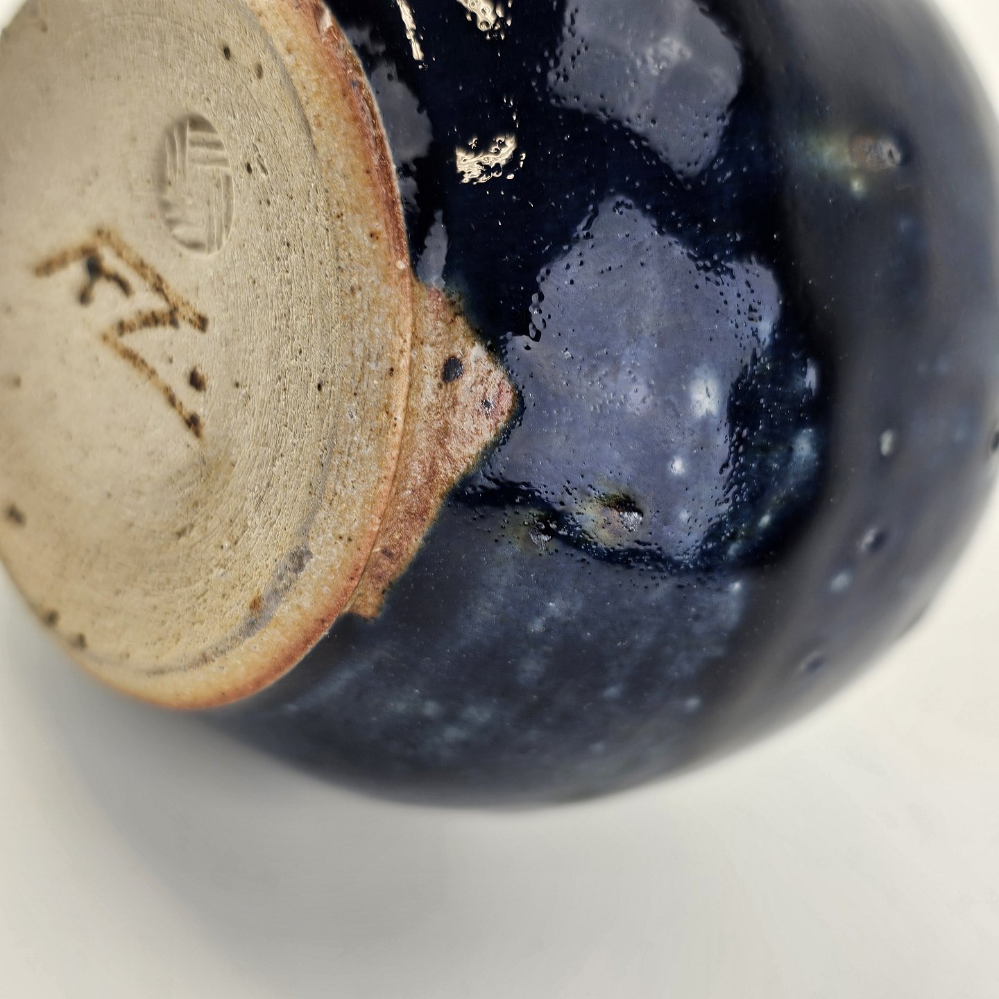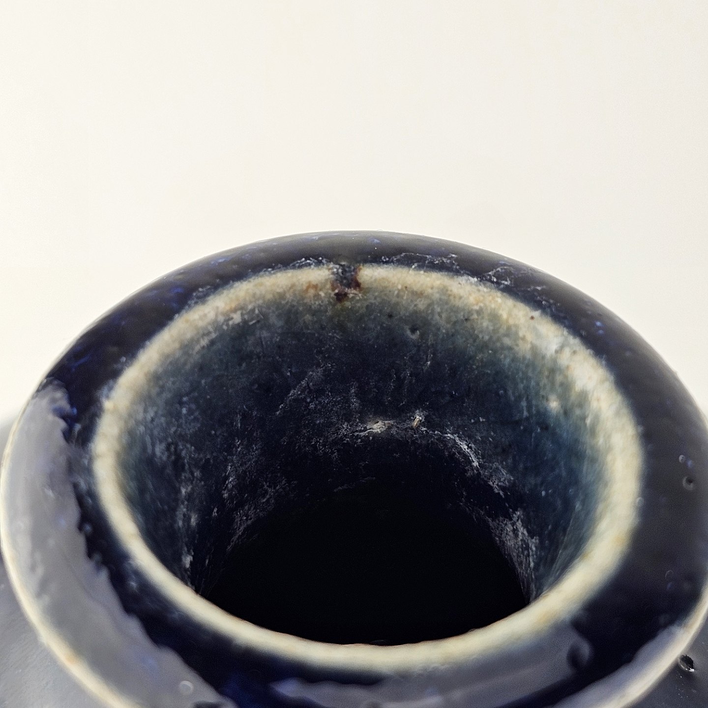 Blålig unika vase i rundlig form med smal hals