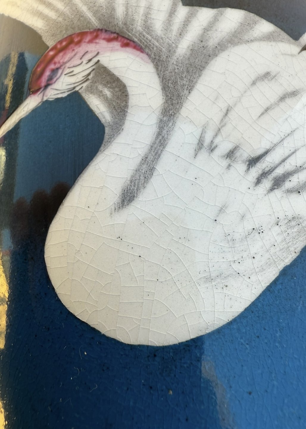 Stor bordlampe med flyvende fugl i porcelæn og messing, højde med fatning 39cm *Enkelte småkrakeleringer under glasuren (se foto) ellers flot stand