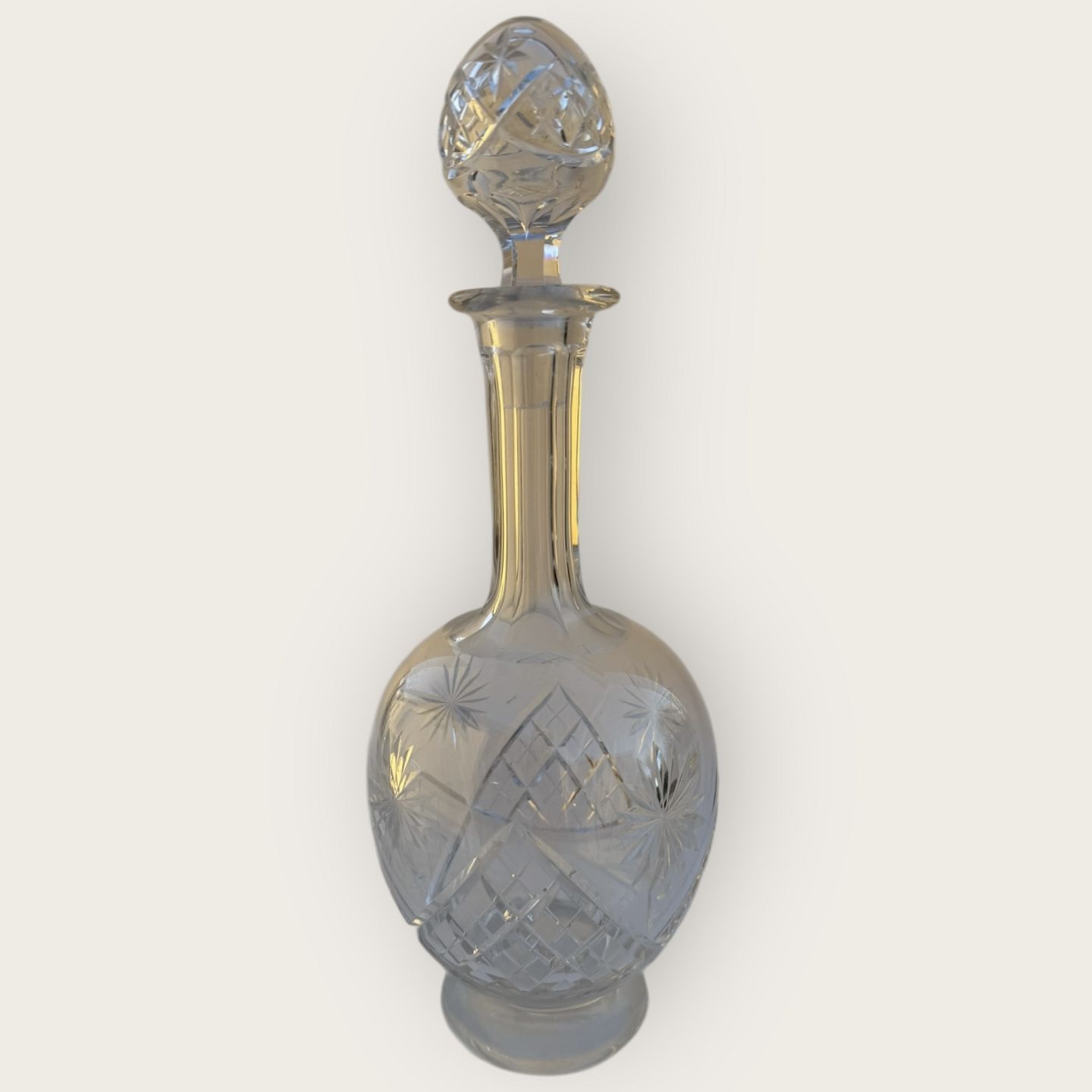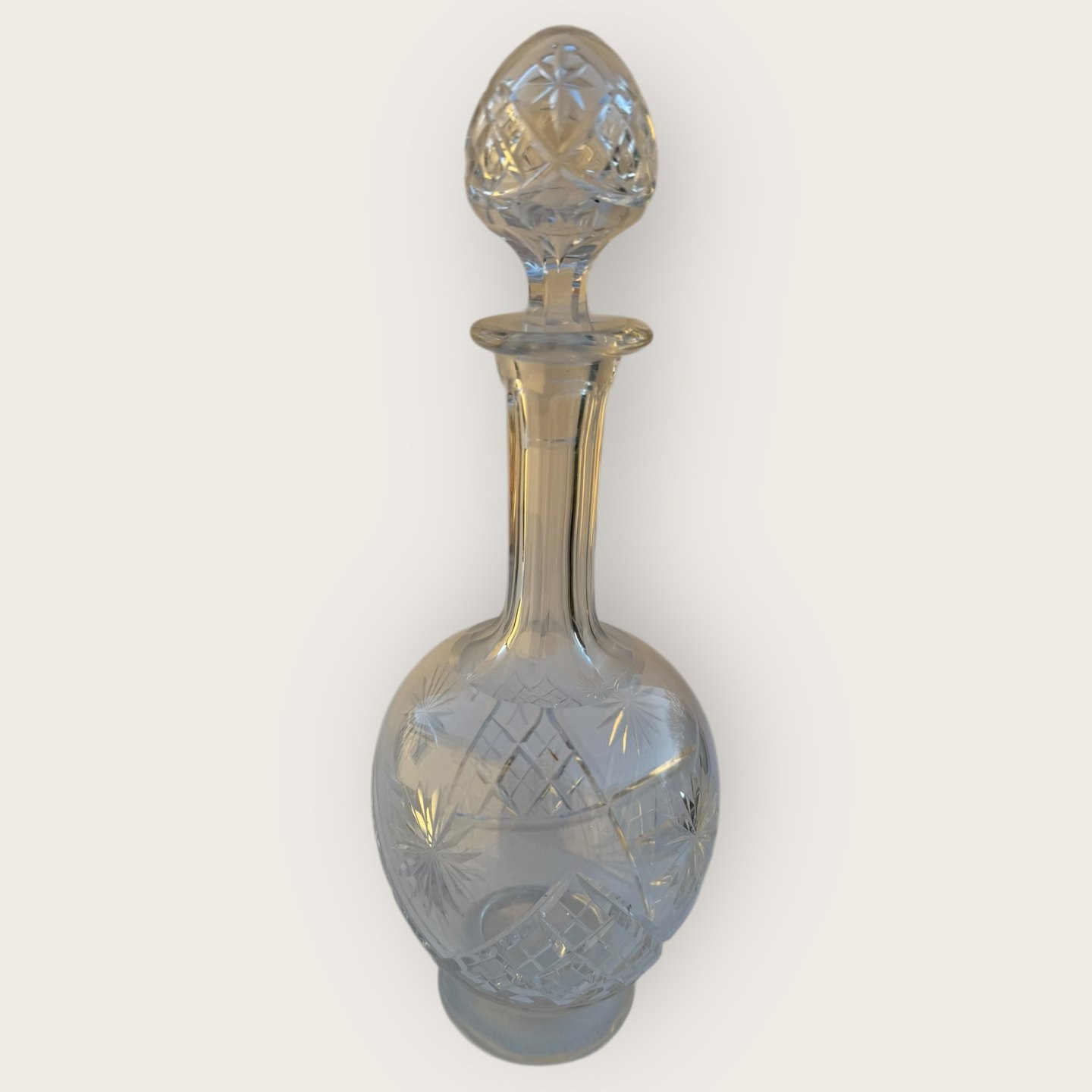 Karaffel med mange slibninger, 31cm høj, *lille smule kalkaflejring i bunden ellers pæn stand*