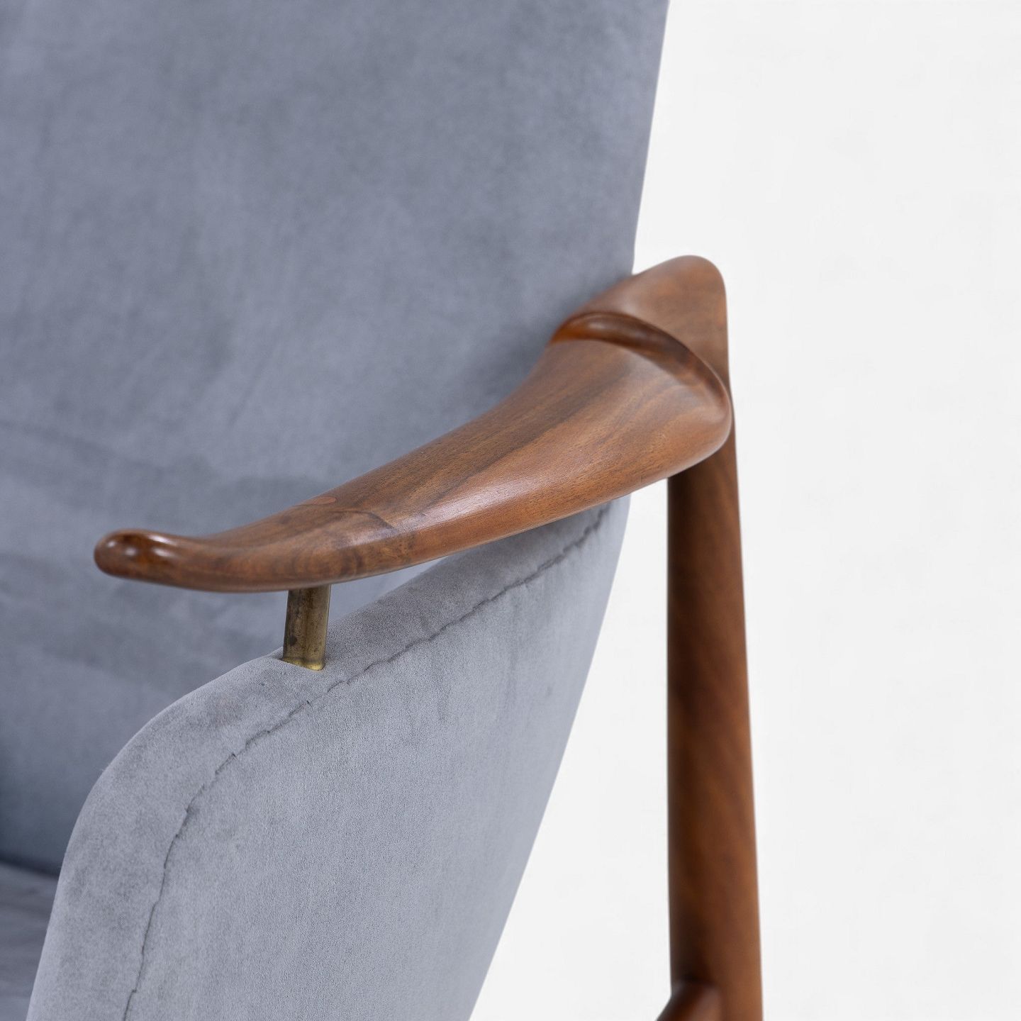 NV 53 - Lænestol i gråt 'Alcantara'-stof med stel i patineret valnød.