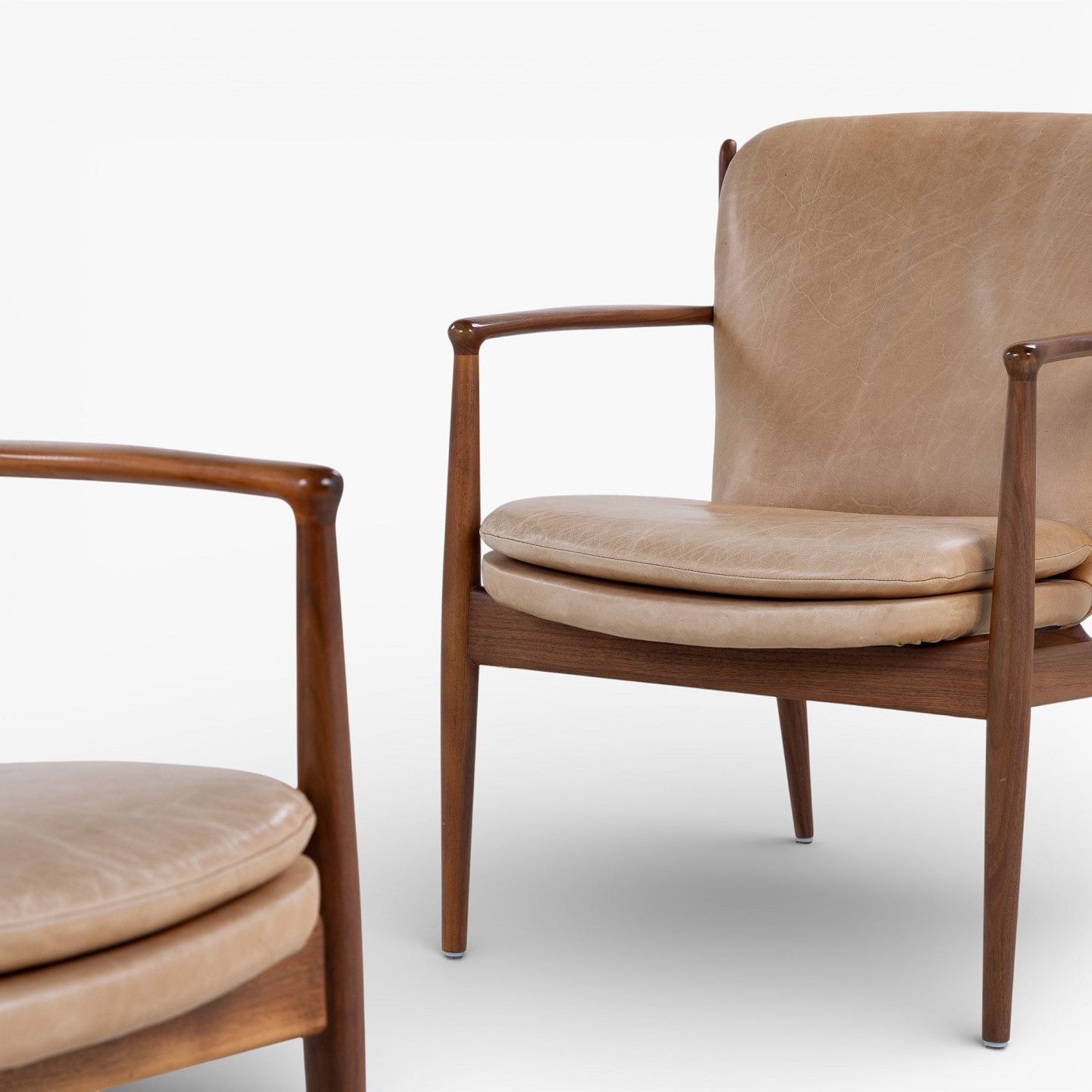 FJ 51 - Par 'Delegeret stolen'-lænestole i valnød og patineret naturlæder. Formgivet i 1951.