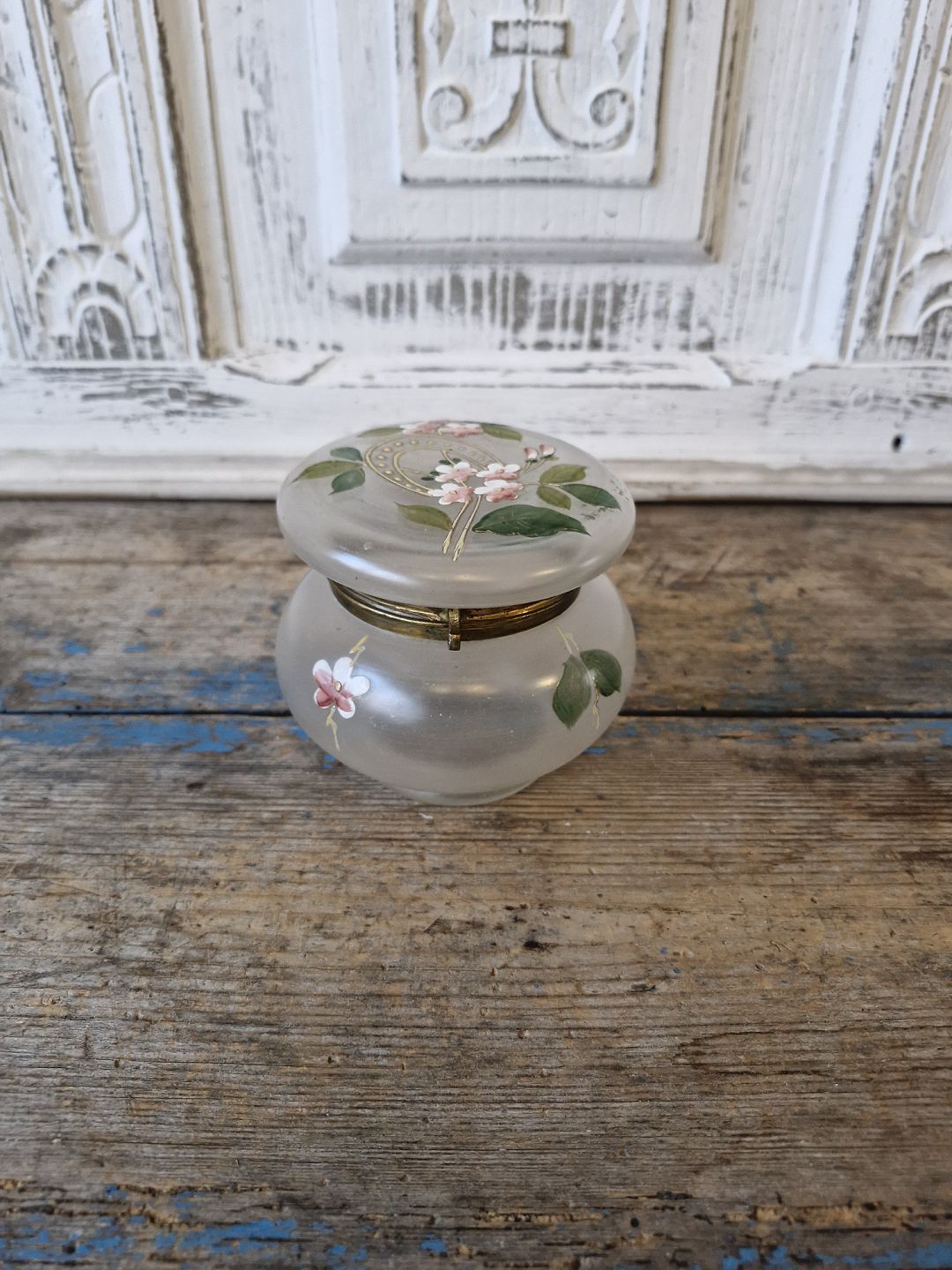 Smykkeskrin i glas med forgyldt bronze montering.
