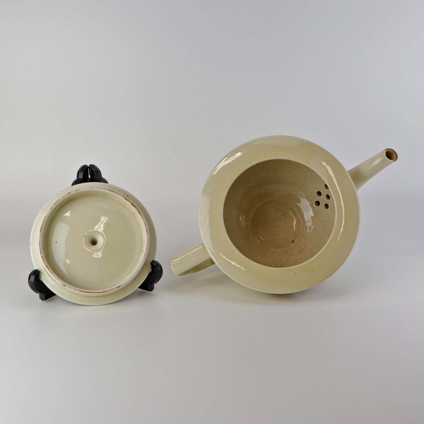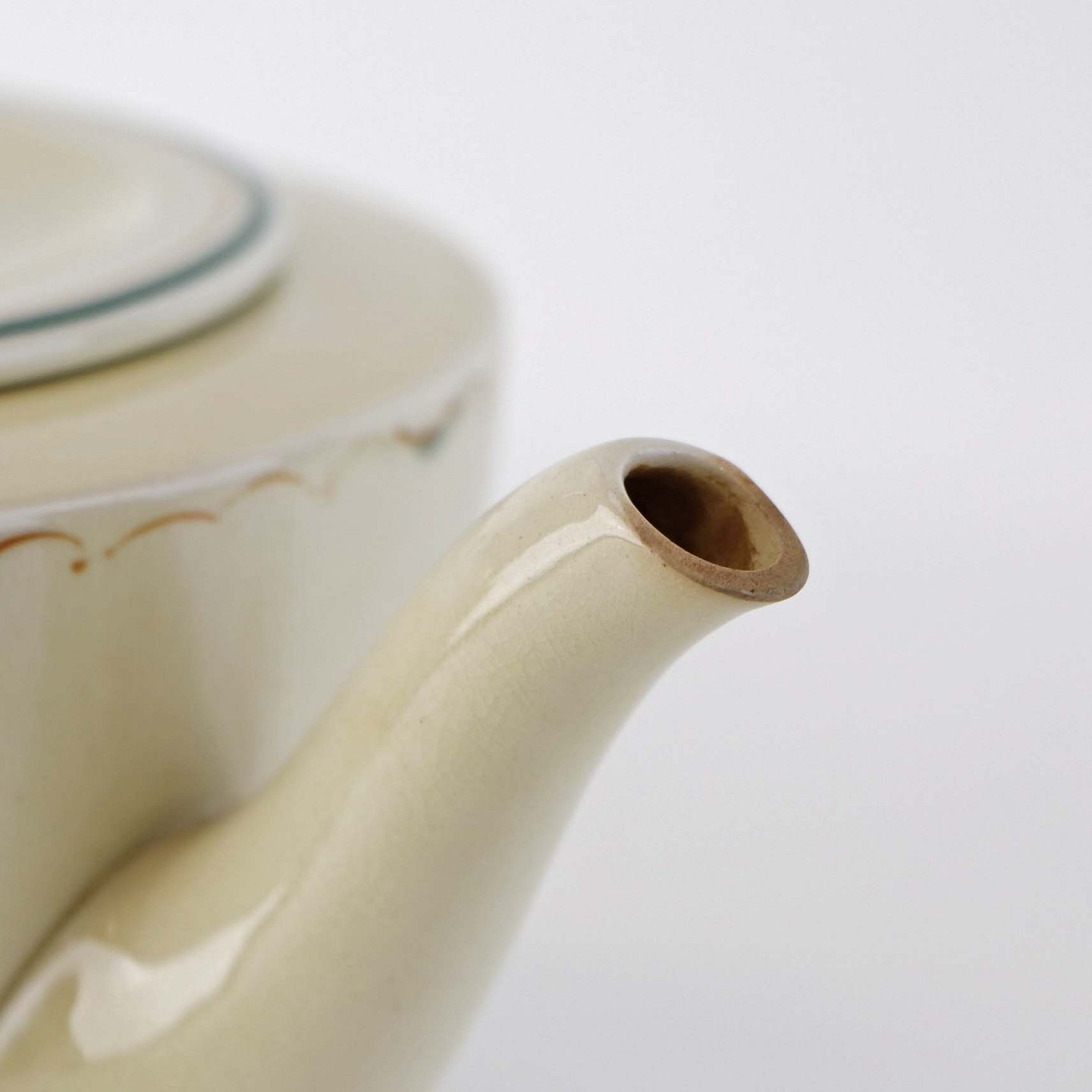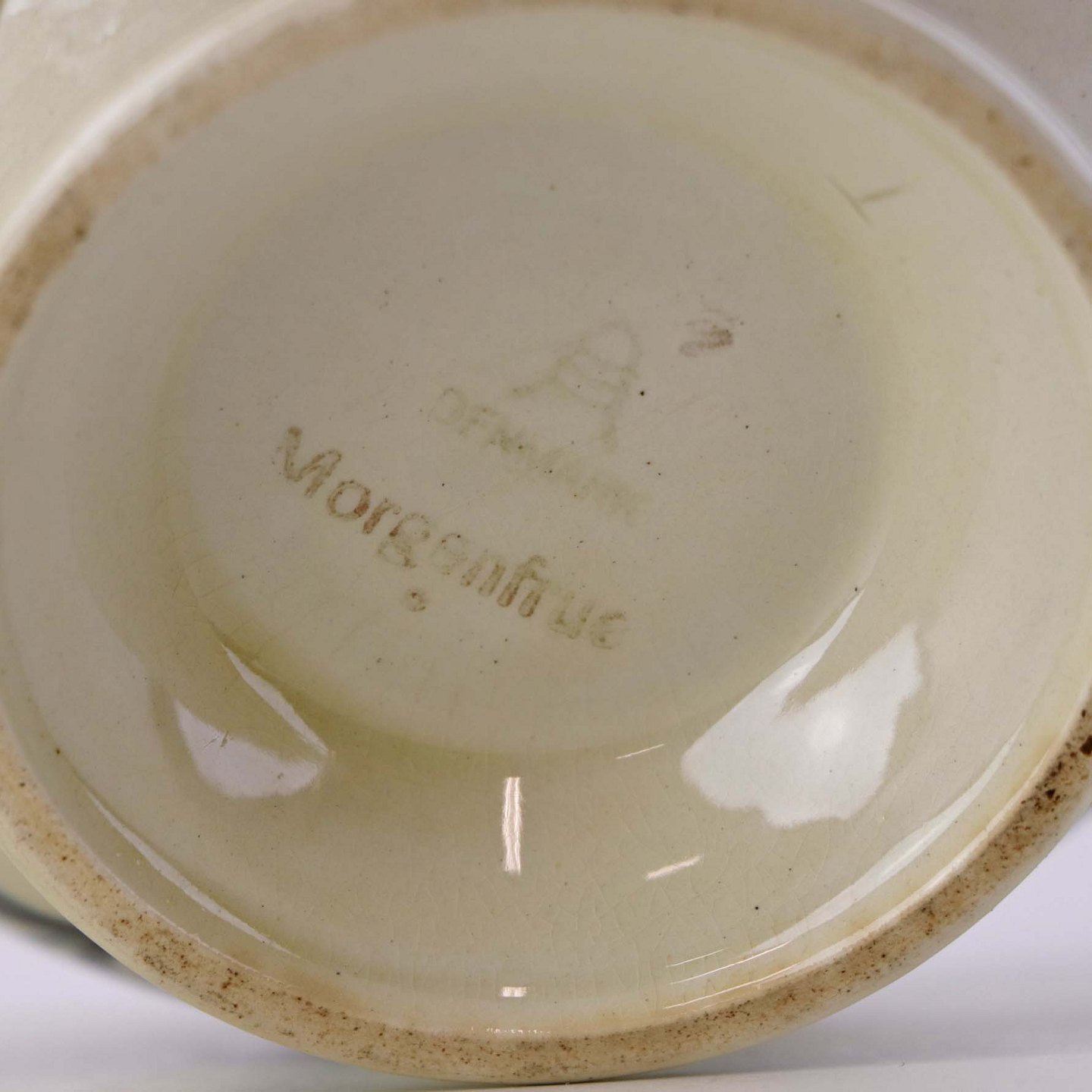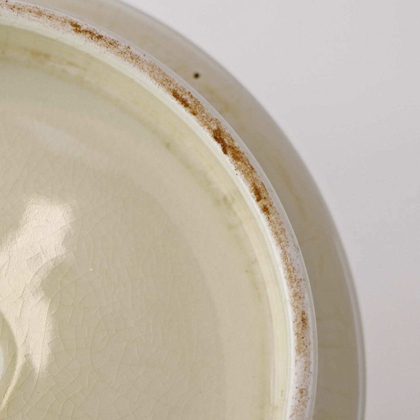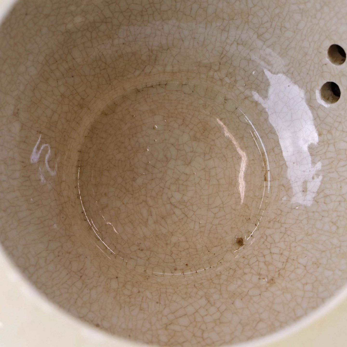 Fremstår med krakkelering i glasurens på kandens inderside samt brugsspor ved tuden.