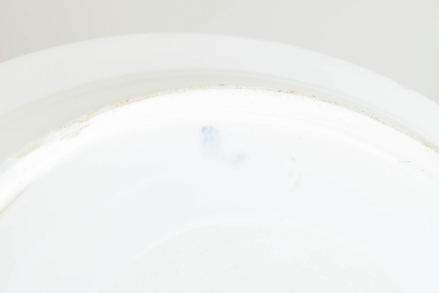 Meget tidligt og imponerende stort serveringsfad udført i Musselmalet riflet med håndmalet koboltblå underglasurdekoration på riflede porcelænsformer. Fadet har en klassisk cirkulær form med velafbalanceret komposition og rig dekoration, karakteristisk for produktionen omkring år 1800.