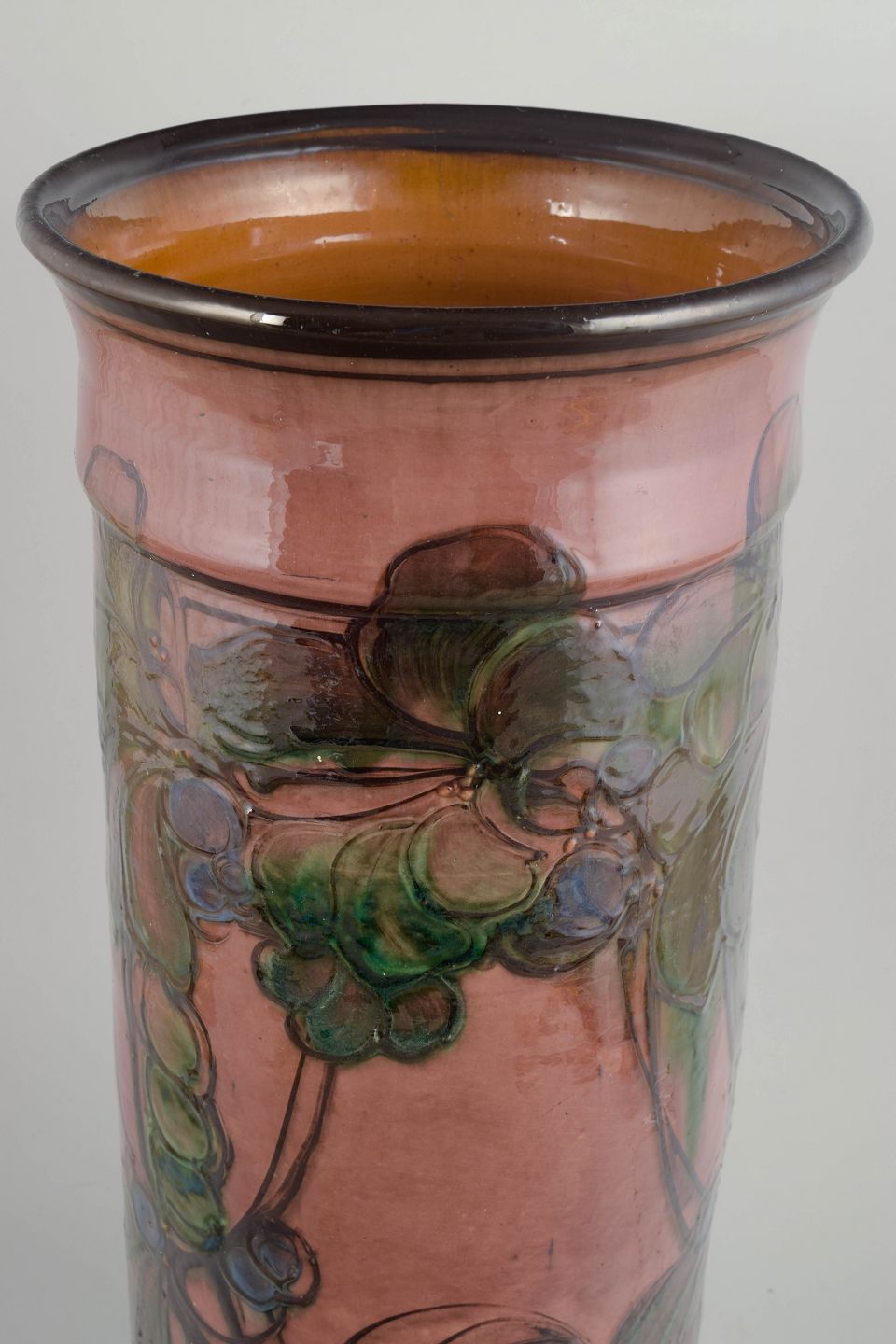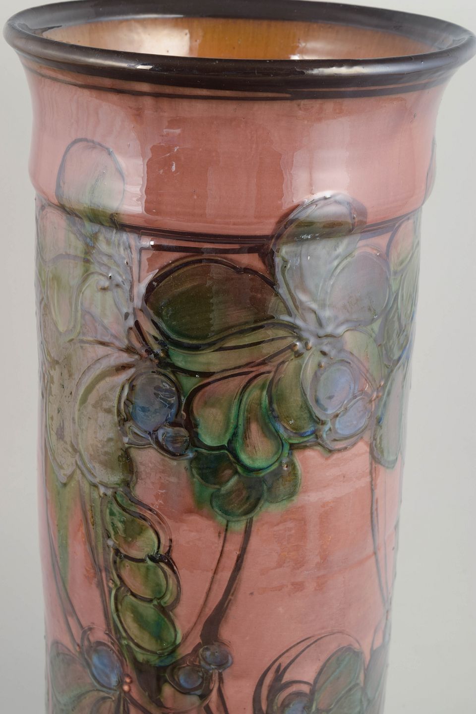 I 1930’erne oplevede Kähler Keramik en kunstnerisk storhedstid, hvor Art Deco-stilen blev fortolket i både form og dekoration. Perioden er kendetegnet ved monumentale former, rige glasurer og håndmalede dekorationer, ofte inspireret af naturens organiske linjer. Store gulvvaser som denne blev produceret i begrænsede antal og regnes i dag blandt de mest eftertragtede arbejder fra Kählers mellemkrigsproduktion.