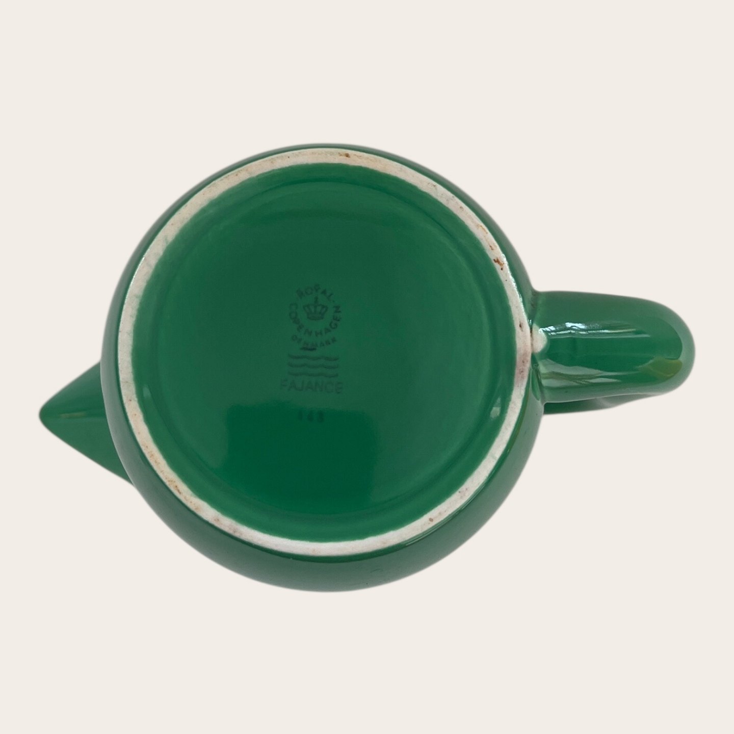 Royal Copenhagen, Aluminia, Ursula, Kande med hank, Grøn #143, 1. sortering, 16cm høj, 21cm bred, Design Ursula Munch Petersen *Pæn stand* (Se også låg til kanden varenr. 629129)
