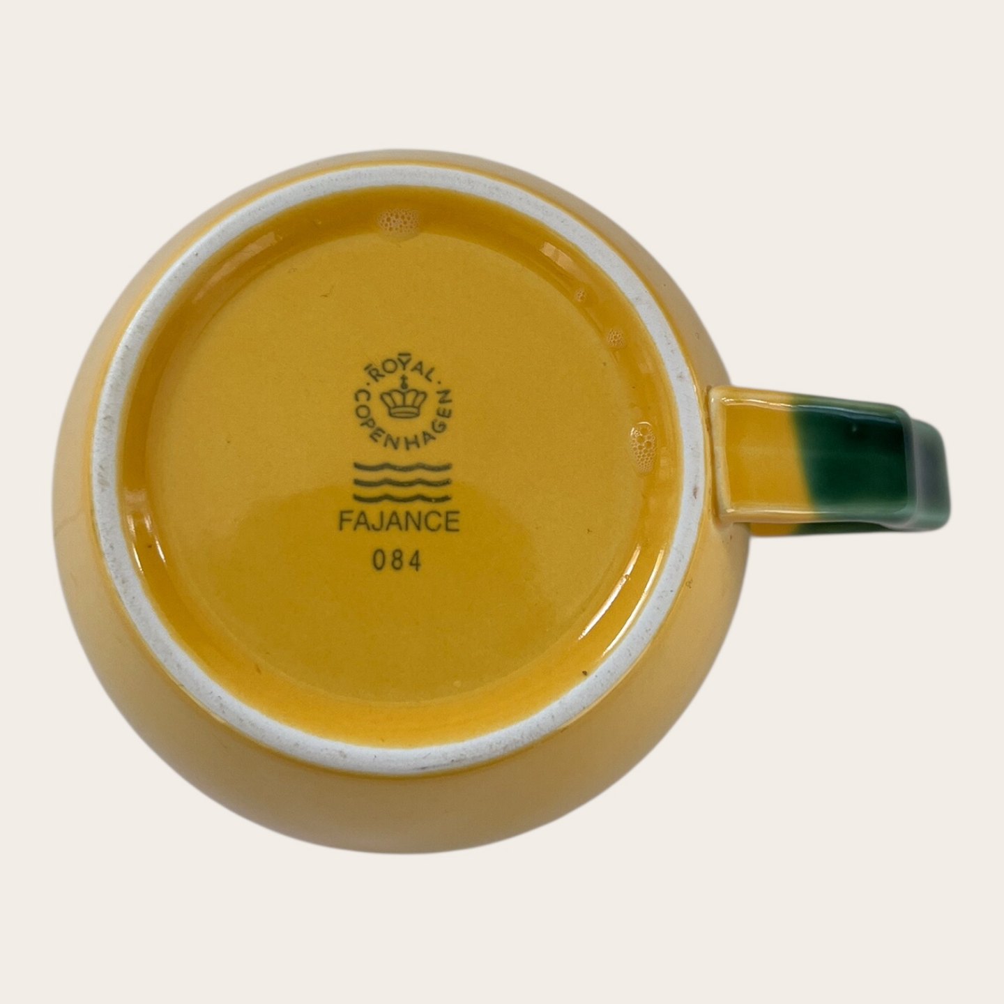 | Royal Copenhagen, Aluminia, Ursula, Tekop, Gul/ Grøn #084, 1. sortering, 13cm bred, 7cm høj, 9,5cm i diameter, Design Ursula Munch Petersen, 6 stk. mørk gul, 4 stk. lidt lysere gul *Pæn stand*