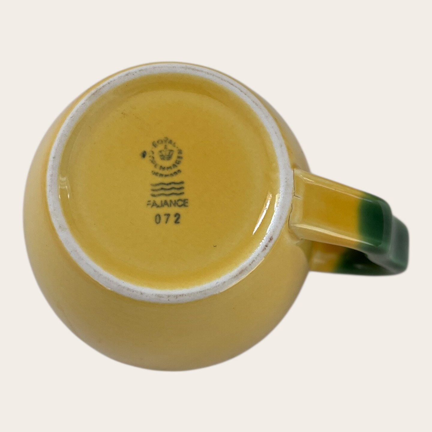 | Royal Copenhagen, Aluminia, Ursula, Kaffekop Gul/ Grøn #072, 1. sortering, 7cm høj, 10,5cm bred, 8,5cm i diameter, Design Ursula Munch Petersen *Pæn stand*