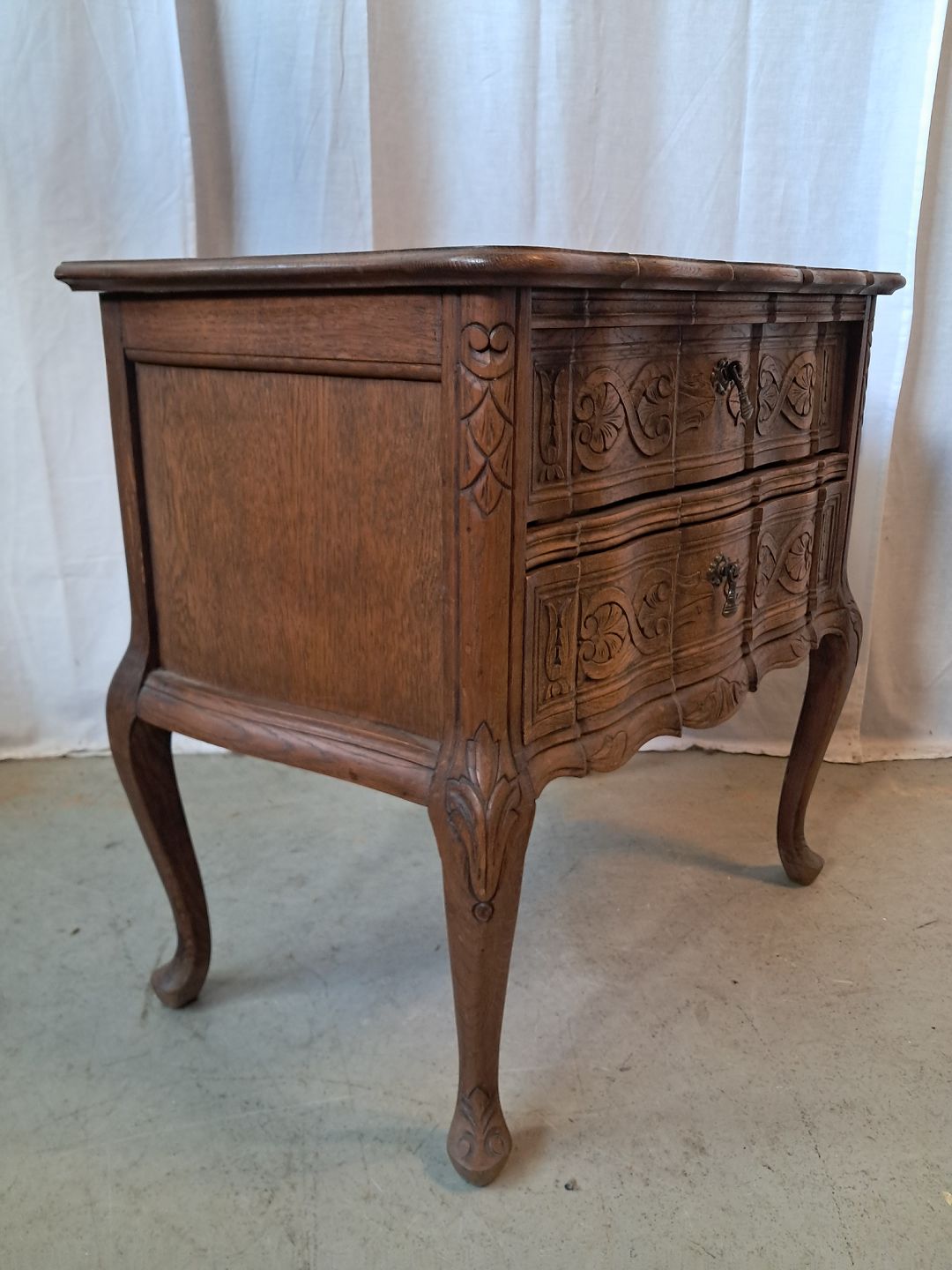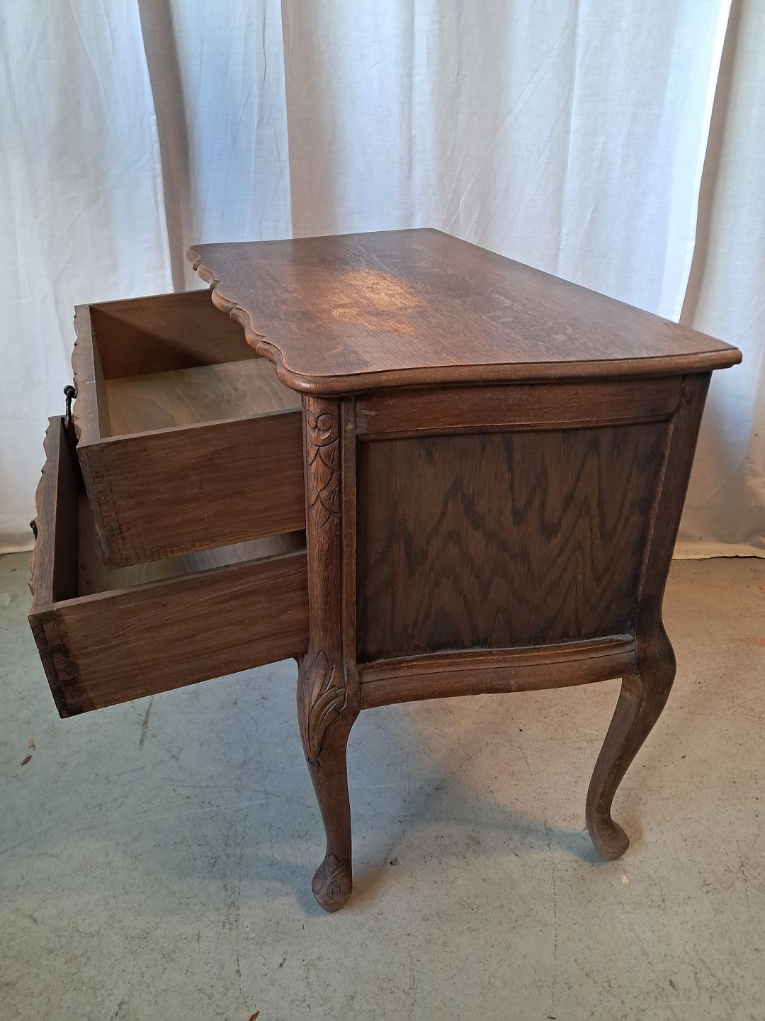 Kommode i fineret egetræ, fra 1950erne.