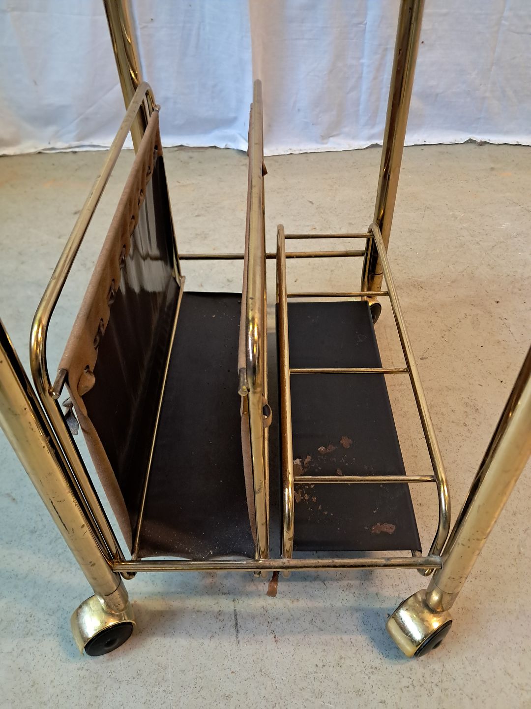 Bord i metal med magasinholder, flaskerum og glasplade, fra 1980erne.