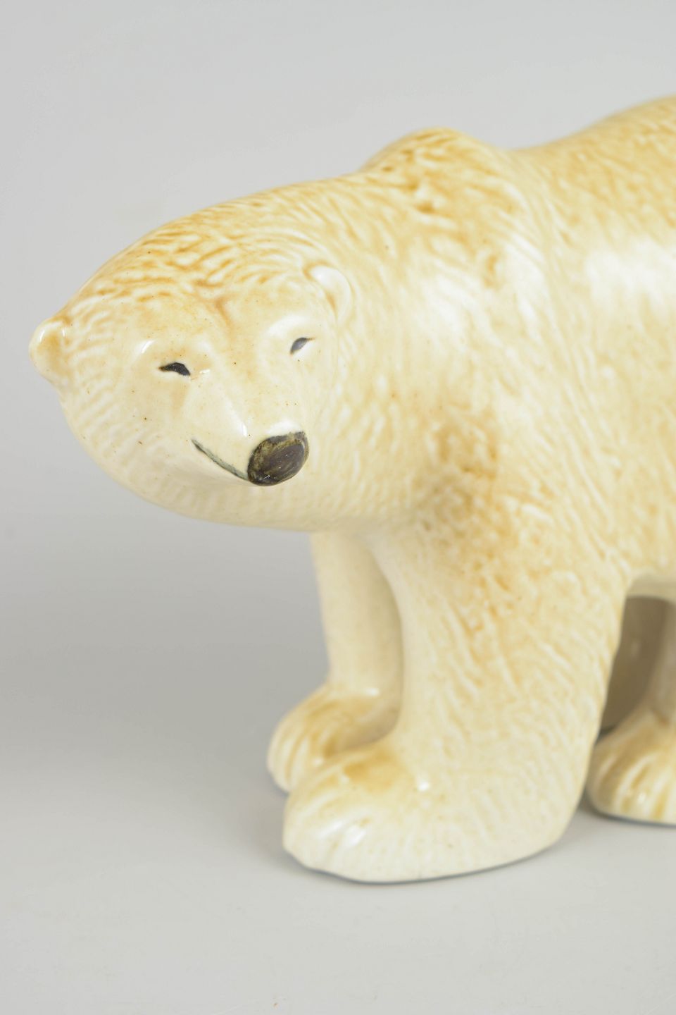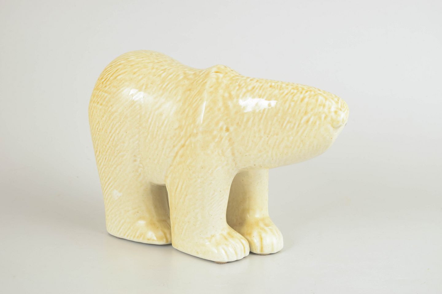 Dekorativ dyrefigur i glaseret stentøj, udført som isbjørn med bløde, afrundede former og diskret bemaling i ansigtet. Figuren er udført i 1970’erne og har et enkelt, karakteristisk udtryk, hvor form og overflade fremhæver Lisa Larsons stil. Modellen er fra Skansen-serien.