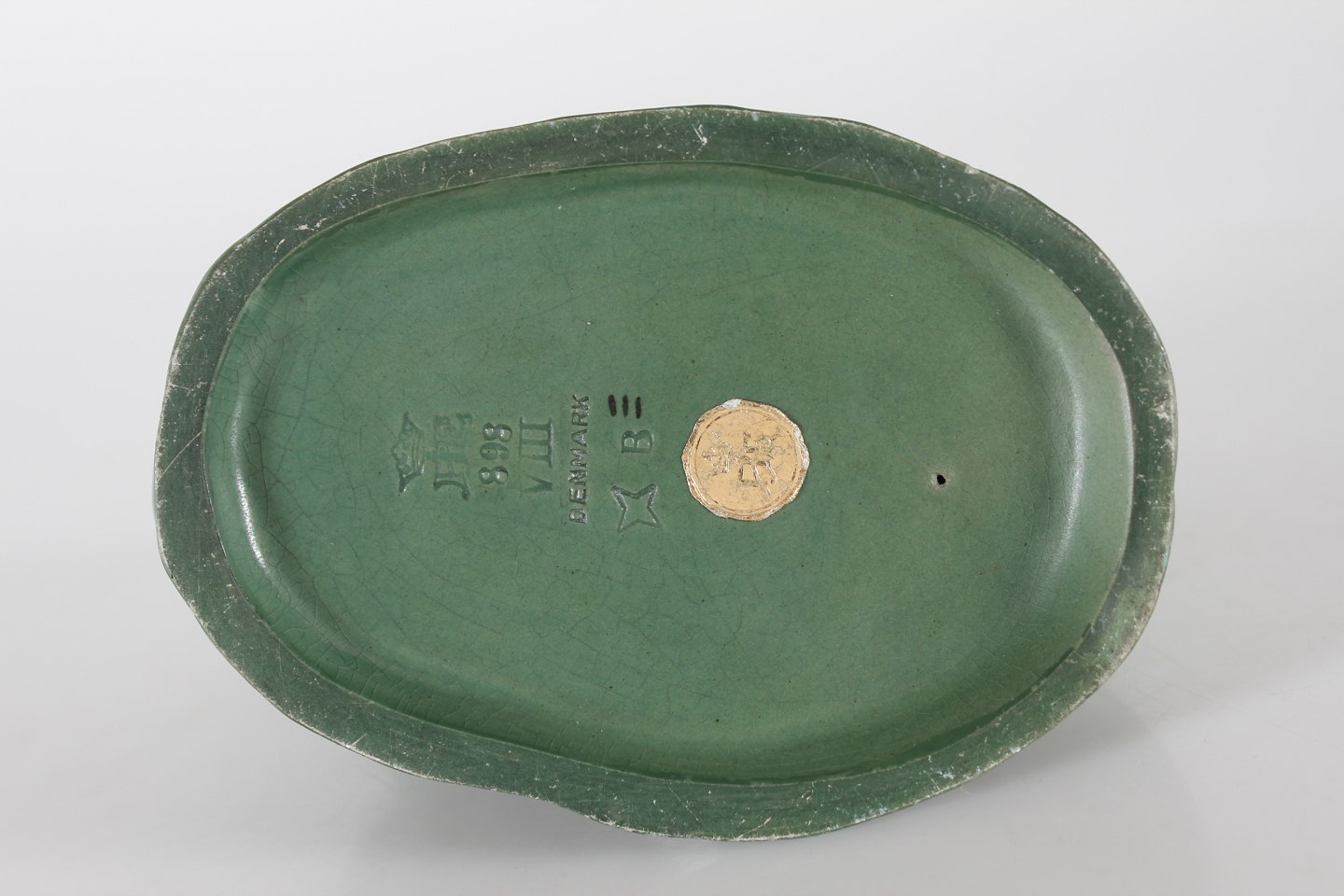 Fremstillet af keramik dekoreret med jadegrøn glasur