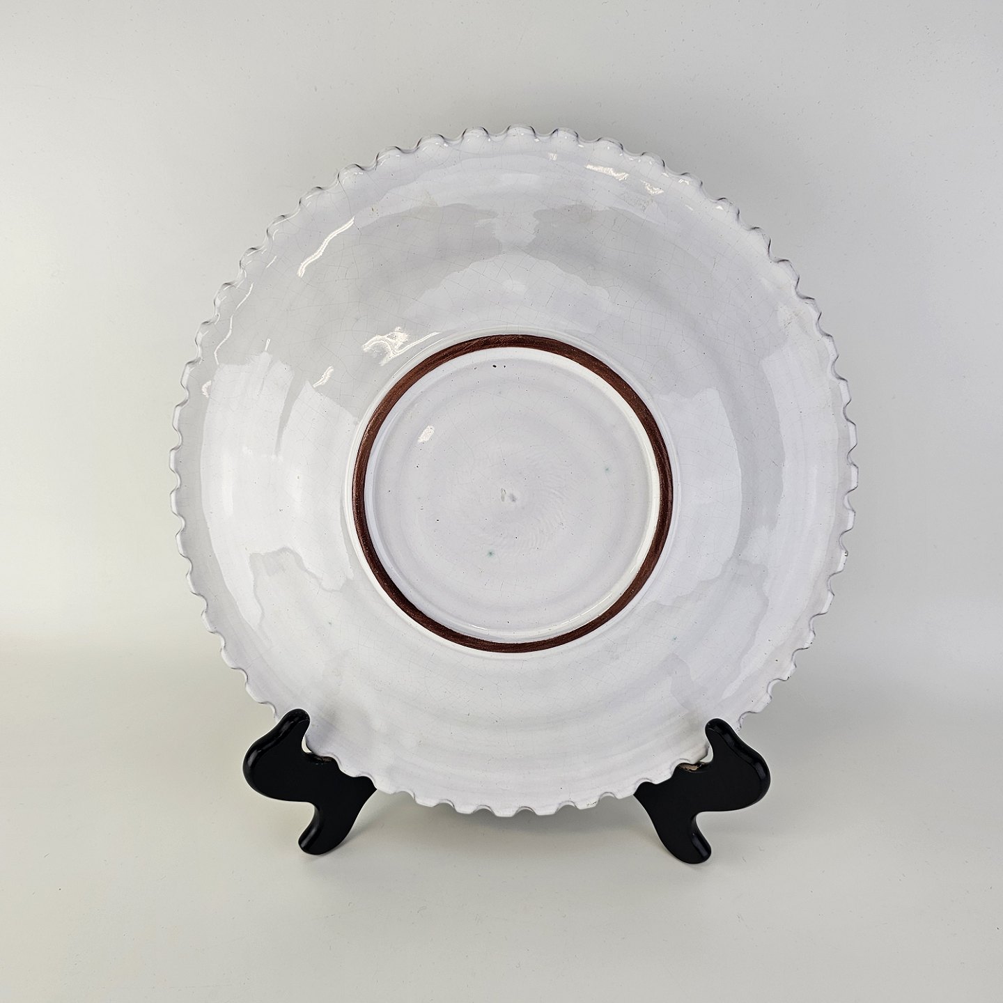 Rundt fad med riflet tekstur i keramik med hvid glasur