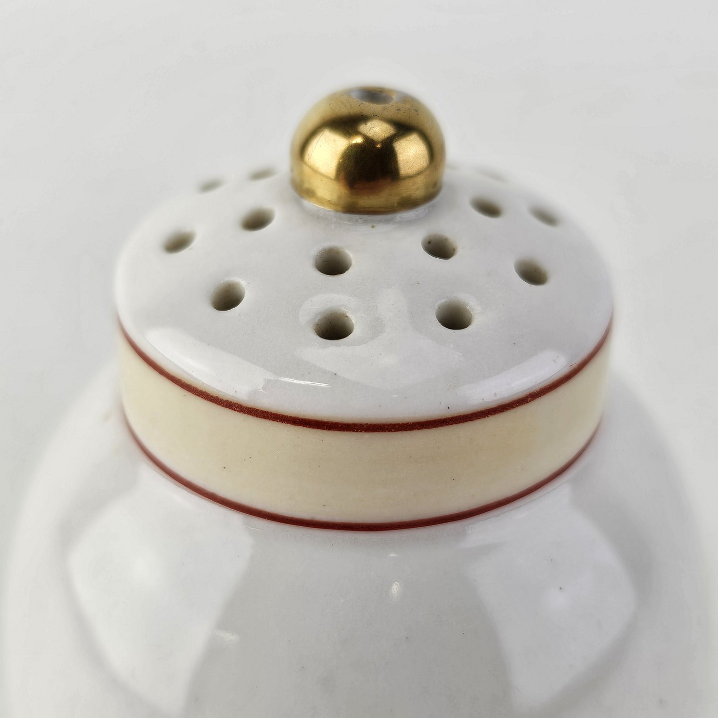 Saltbøsse eller peberbøsse i kongeligt porcelæn fra stellet Det spanske stel. Mangler prop