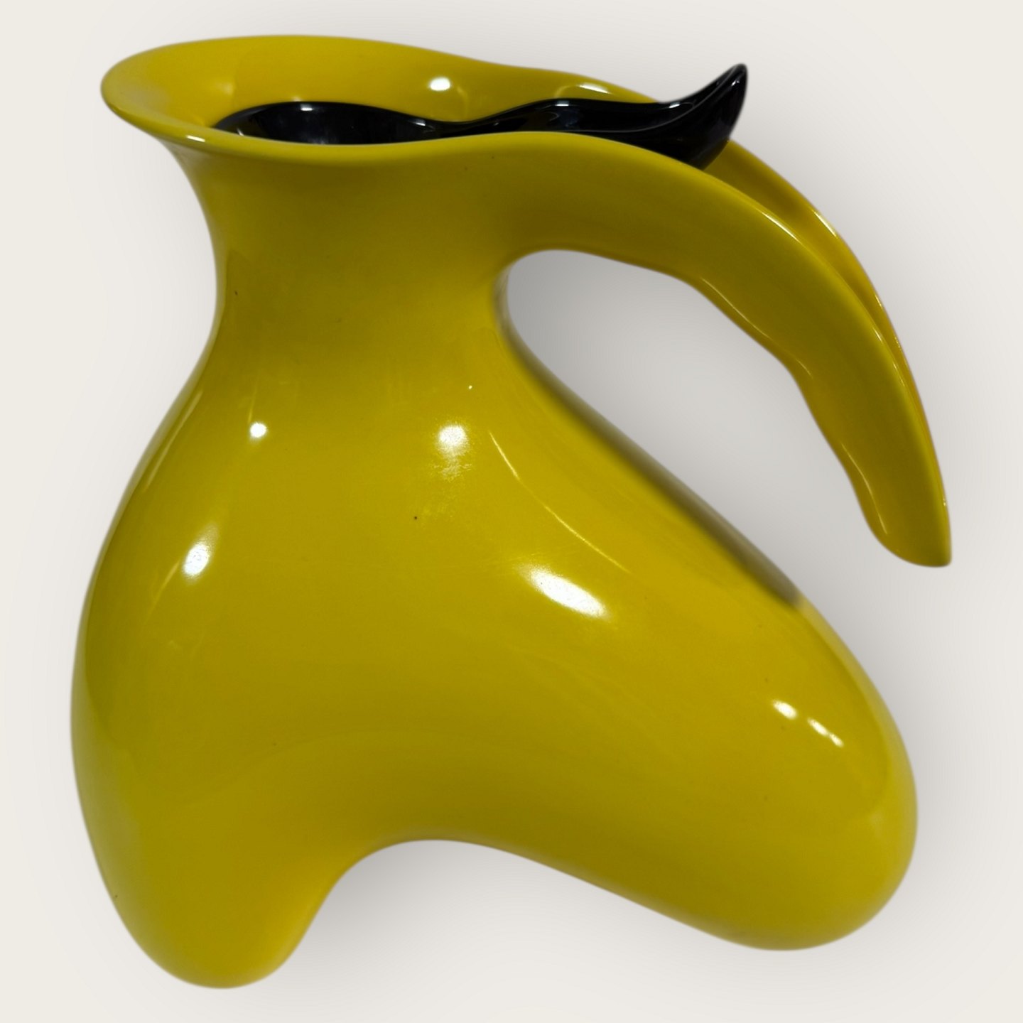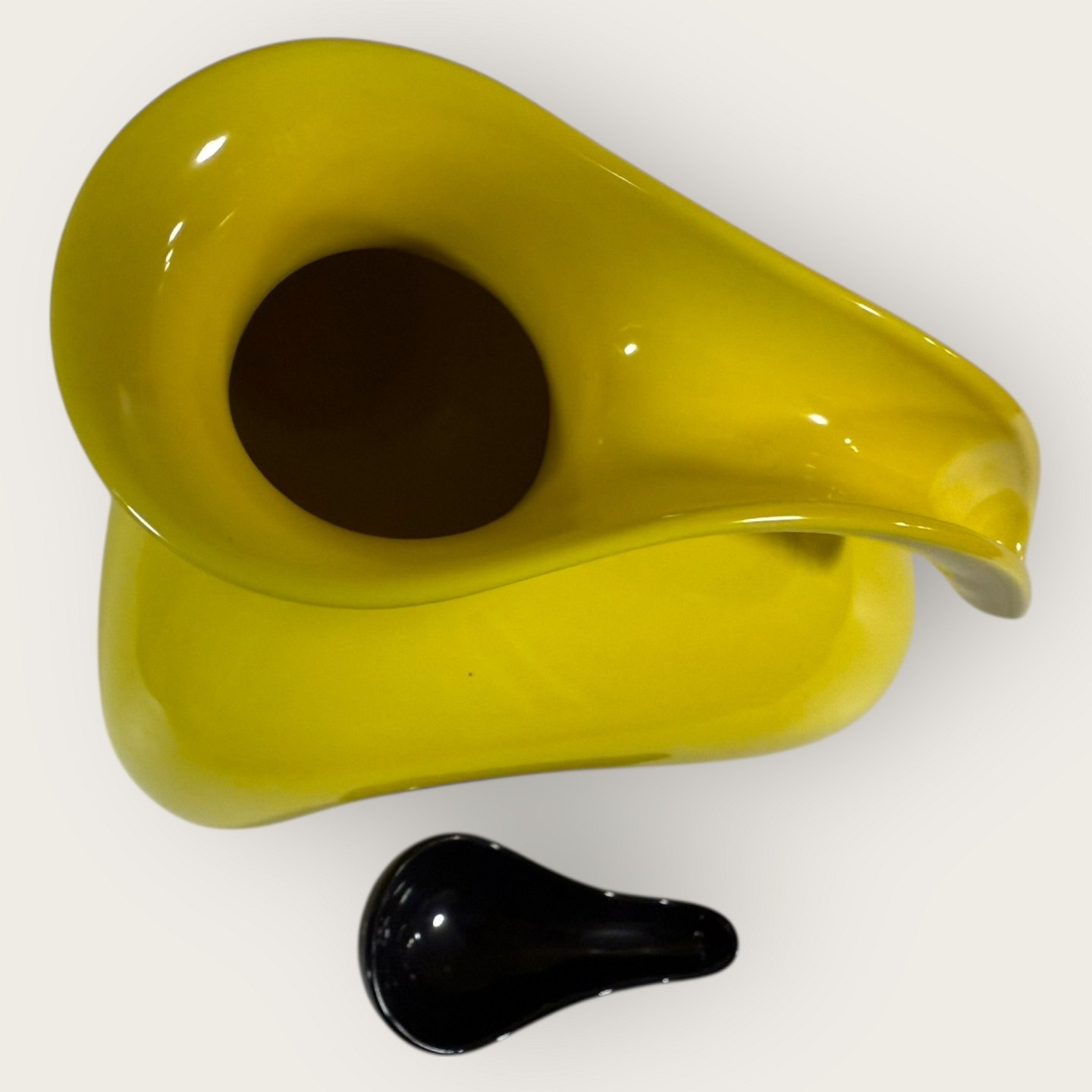 Royal Copenhagen, Fajance, gul kande med sort låg, # 143, Design Ole Jensen, låget fungerer også som måleske, Mål: ca. 20x19x15cm, 1. sortering *Perfekt stand*